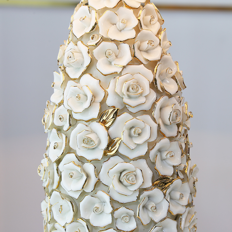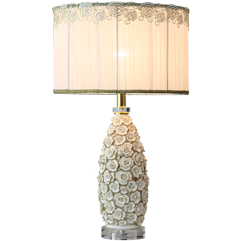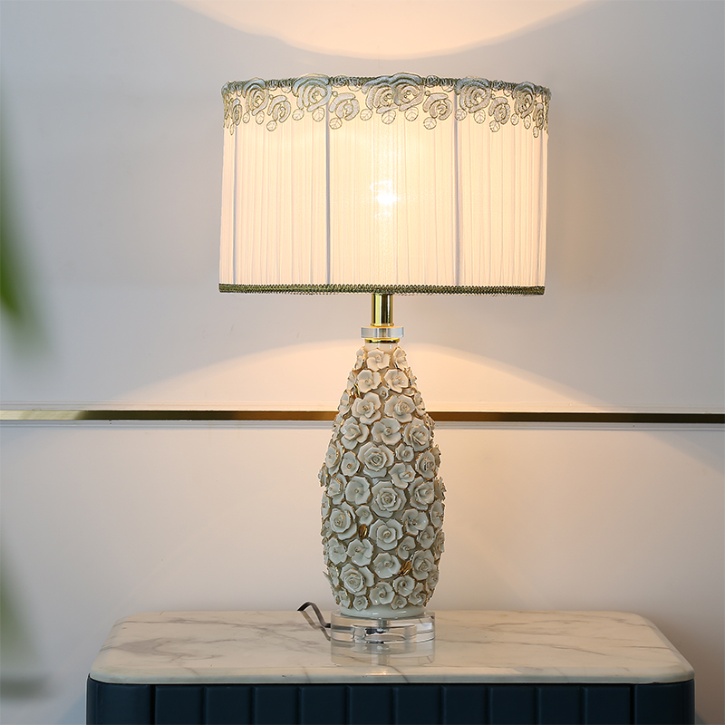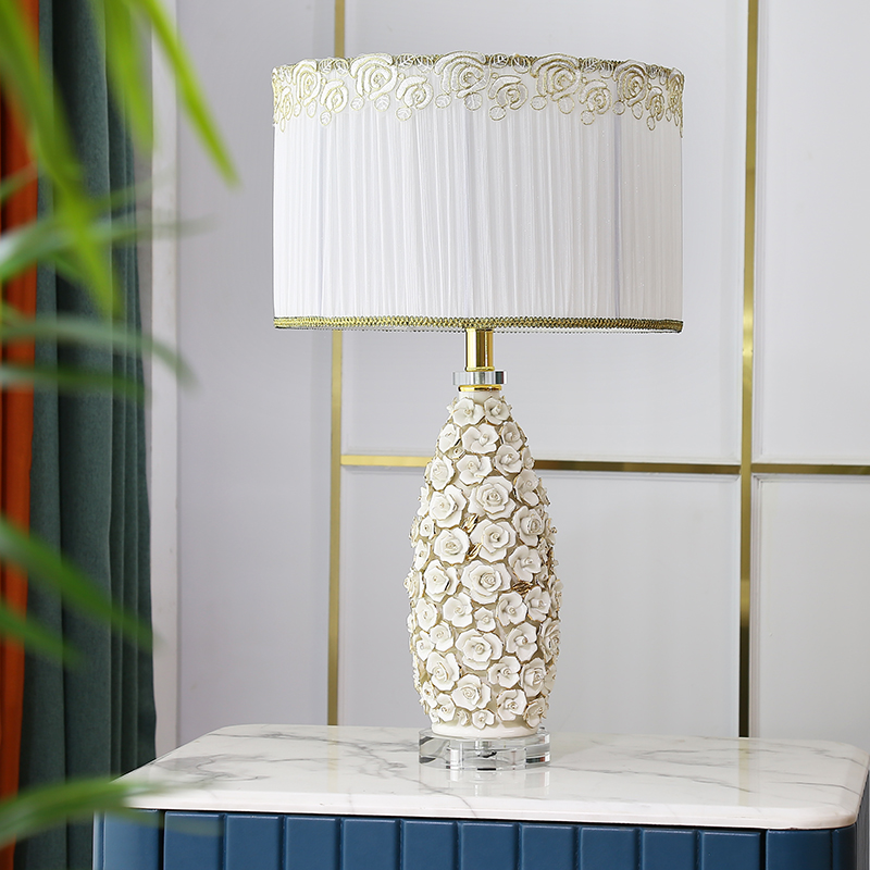 European-style table lamp bedside lamp bedroom light luxury living room modern simple wedding room voice-activated rose depiction gold ceramic table lamp