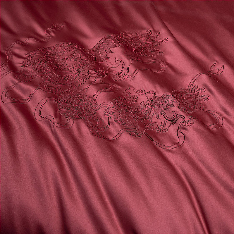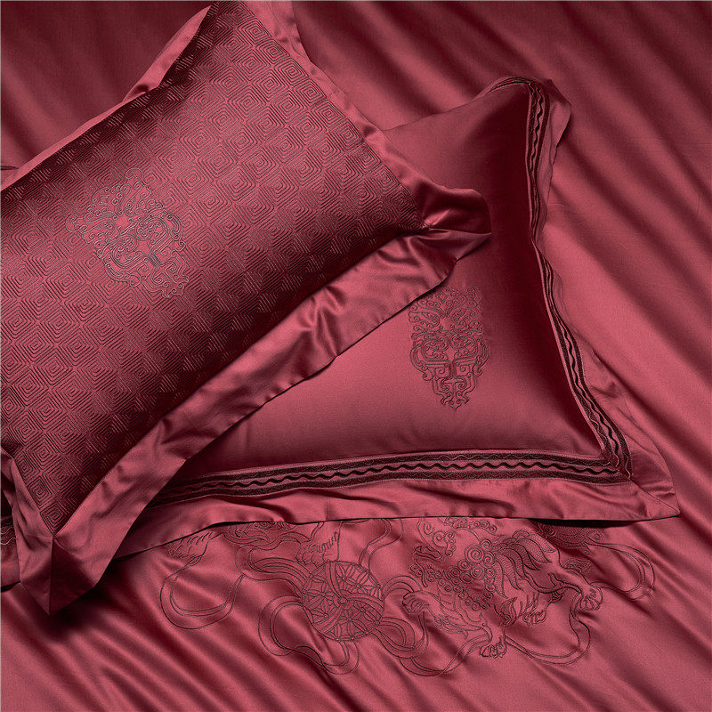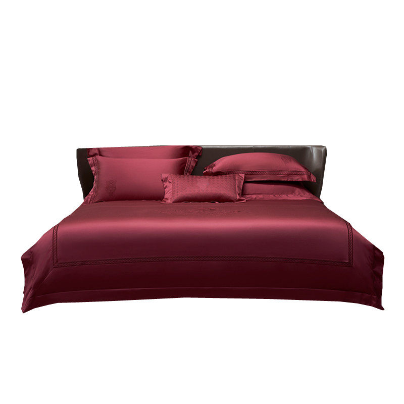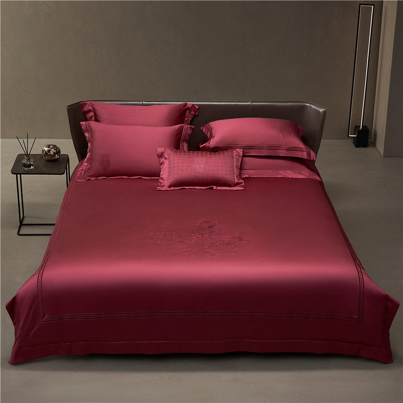 High-end 140-count long-staple cotton wine red wedding four-piece set Western-style wedding bed sheet quilt cover wedding bedding