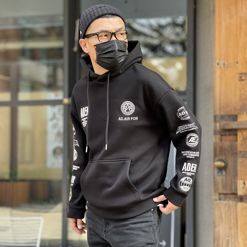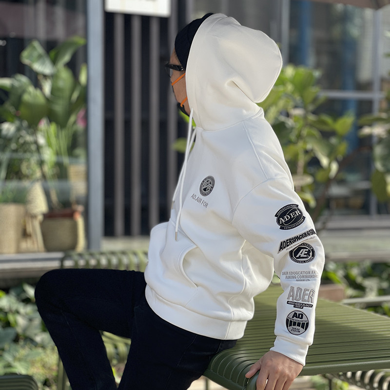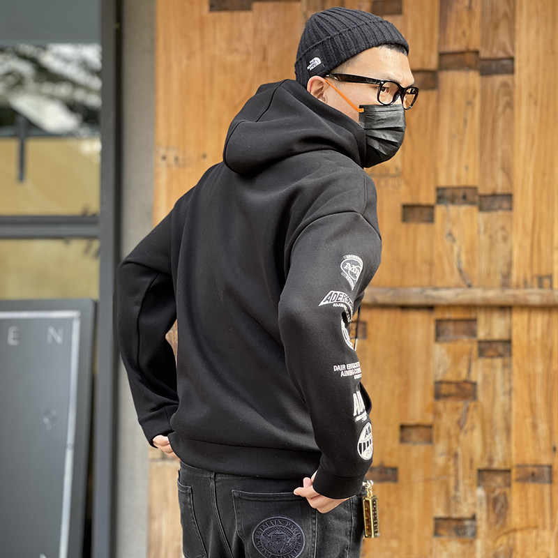 American heavy industry design sense embroidery patch hooded sweater men's trendy brand sports hoodie handsome street casual jacket