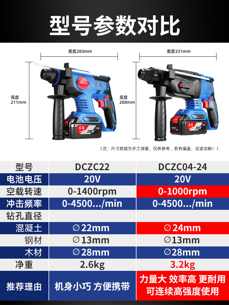 Dongcheng rechargeable electric hammer drill 20V brushless lithium electric impact drill high-power concrete multi-functional electric hammer drill electric pick electric drill