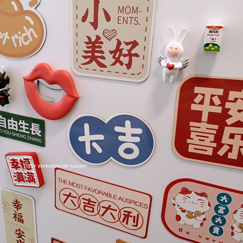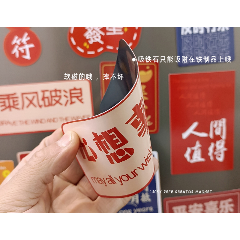 Guochao Creative Festive Text Soft Magnetic Refrigerator Sticker Magnetic Sticker New Year Forword Fridge Door Decoration Magnet Suction Iron Stone-Taobao