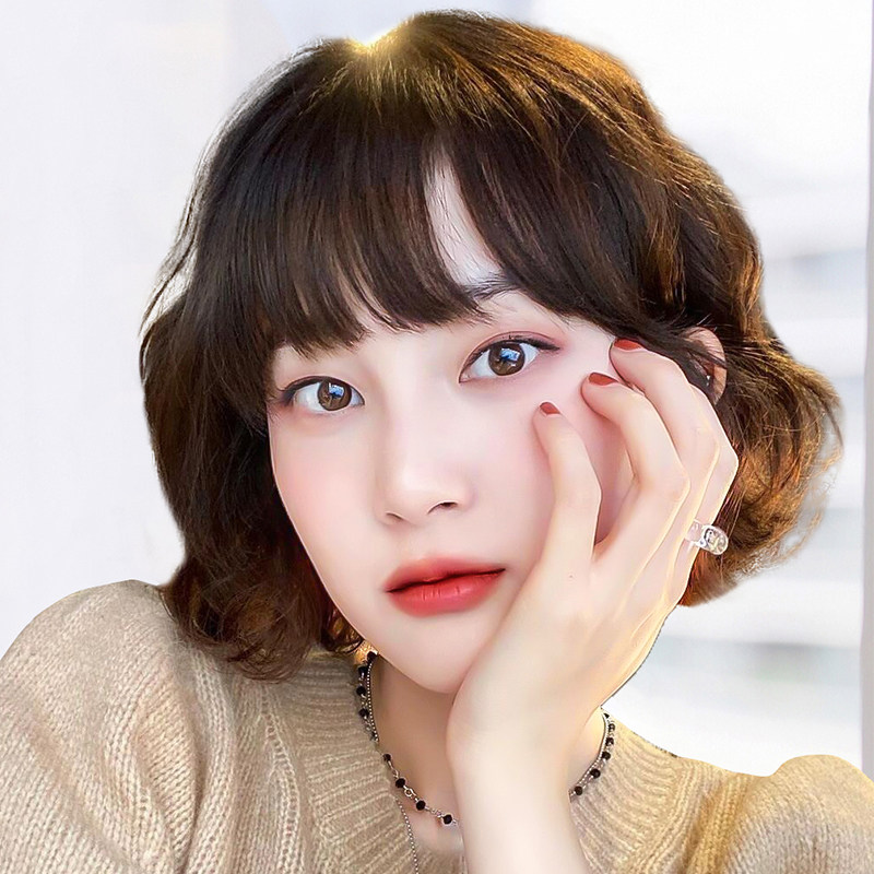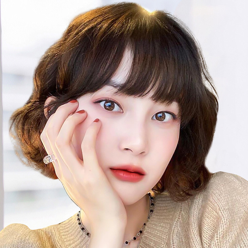 Wig real hair short hair curly hair hairstyle Lady Nature Minus Age Fashion Full Headgear Lady Wig Sleeve