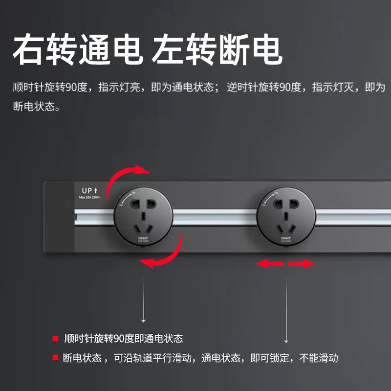 Chint track socket power sliding movable dining cabinet kitchen with surface-mounted guide rail plug-in power socket