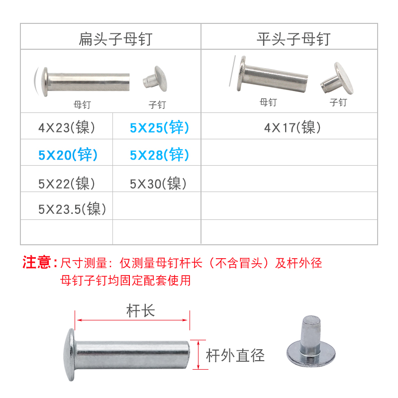 Iron-primary-mother rivet galvanized nickel female male pair knockout lock double-sided nail 2 53456MM large