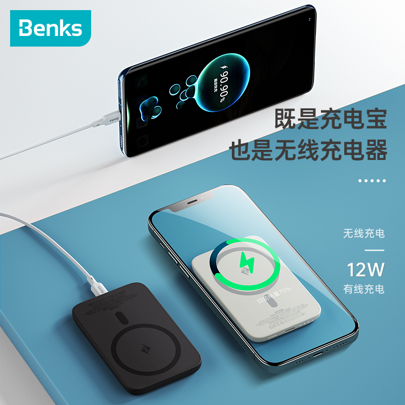 Benks Apple Magsafe magnetic suction wireless mobile charging operation power 13 mobile phone fast charging special back clip iPhone12ProMax external connection battery ultra-thin and small portable
