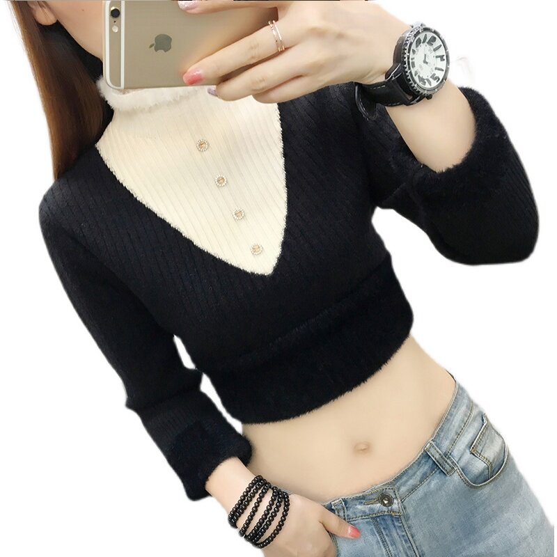 All-in-one velvet half turtleneck sweater women's 2021 new style plus velvet thick warm bottoming shirt women's autumn and winter inner knitting