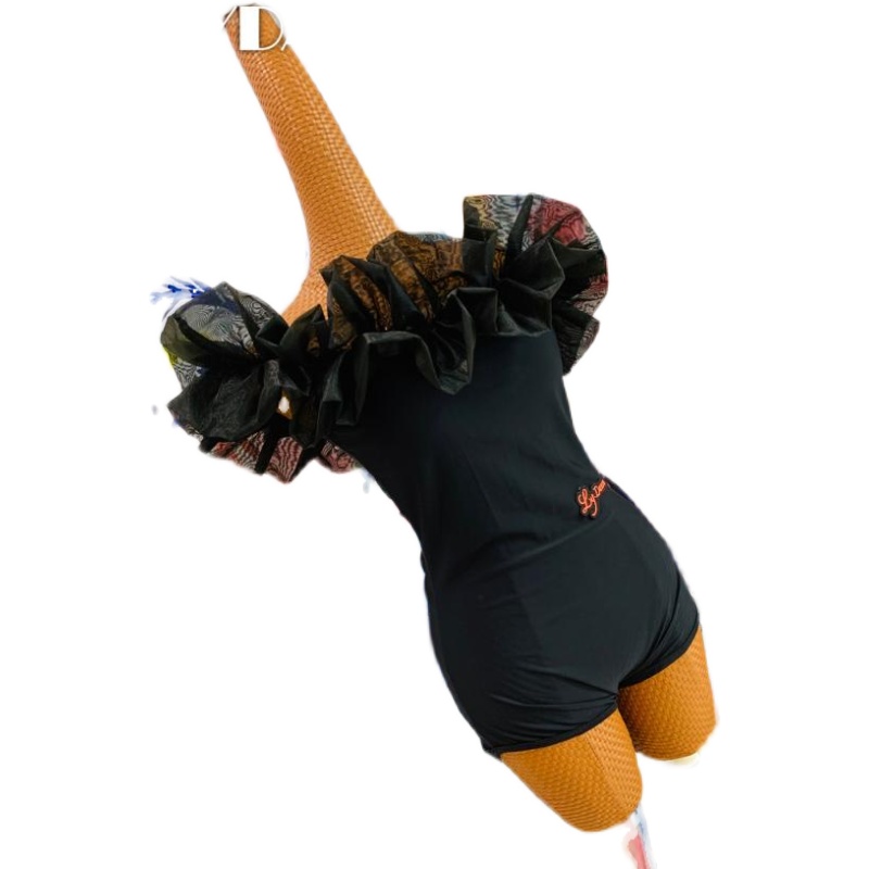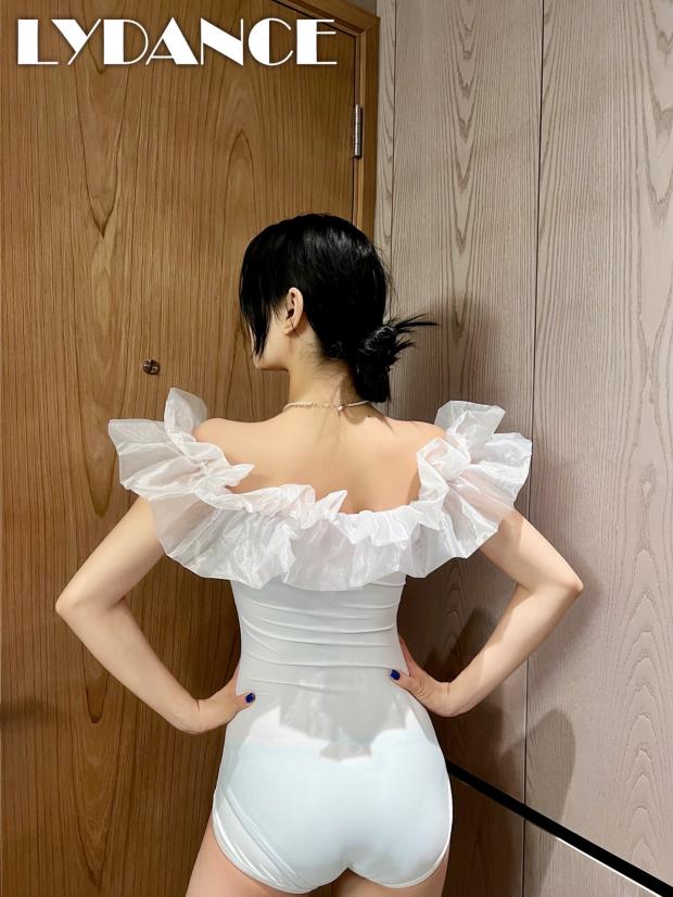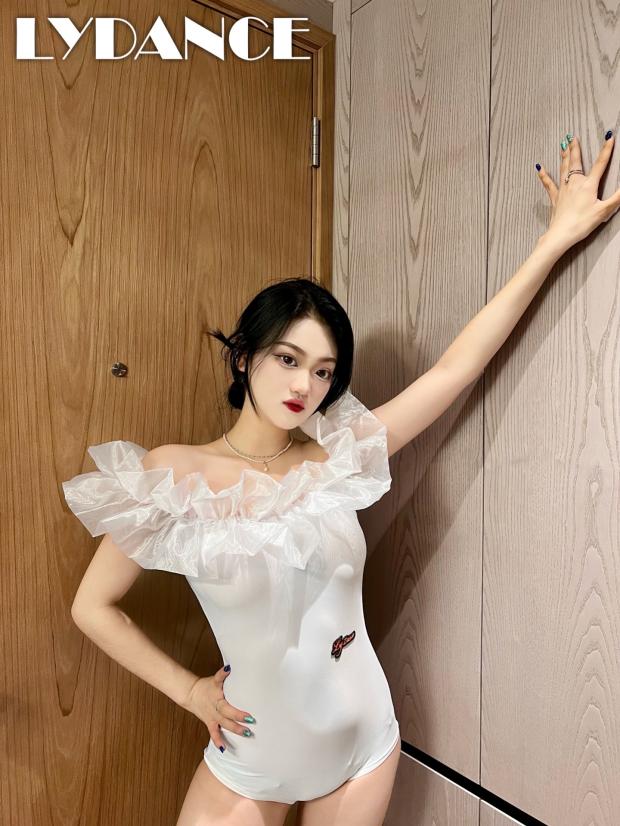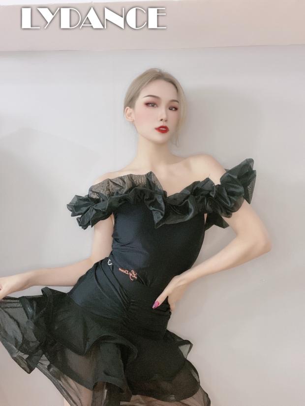 LYDAANCE Dancing net red Latin dance dress rehearsas for female adult children with a shoulder-of-the-shoulder bubble sleeve gymnastics suit