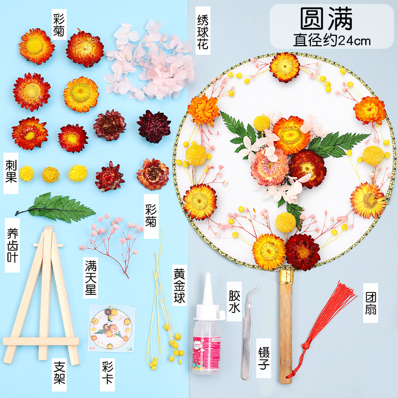 Dry Flower Ensemble Fan Diy Material Bag Evergreen Flowers Handcrafted Fan Parent-child Handmade Activities Ensemble of the Mid-Autumn Teachers' Day