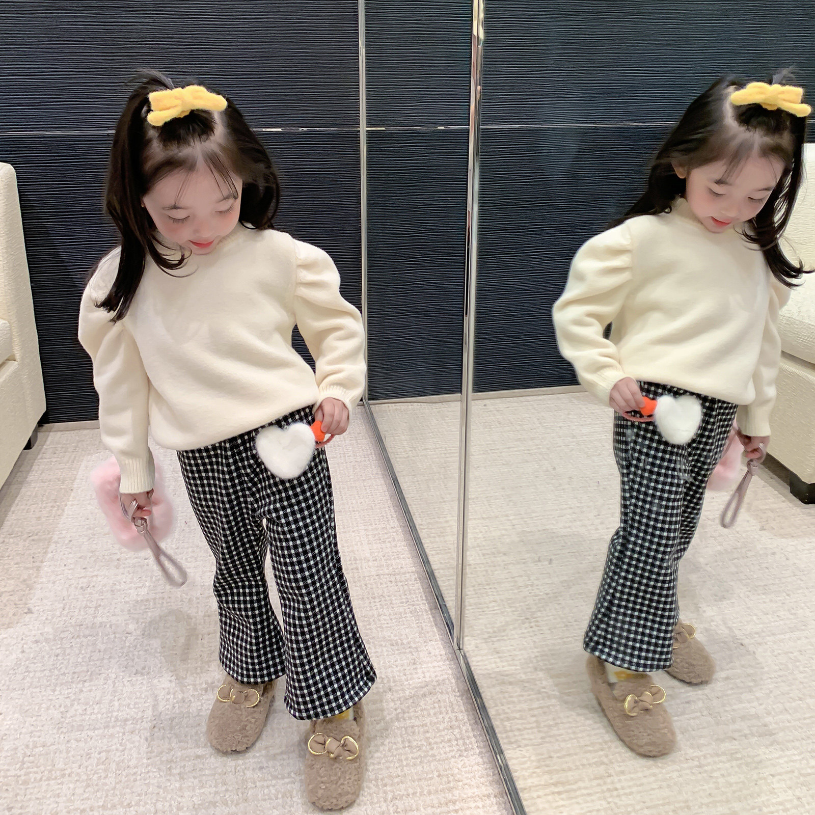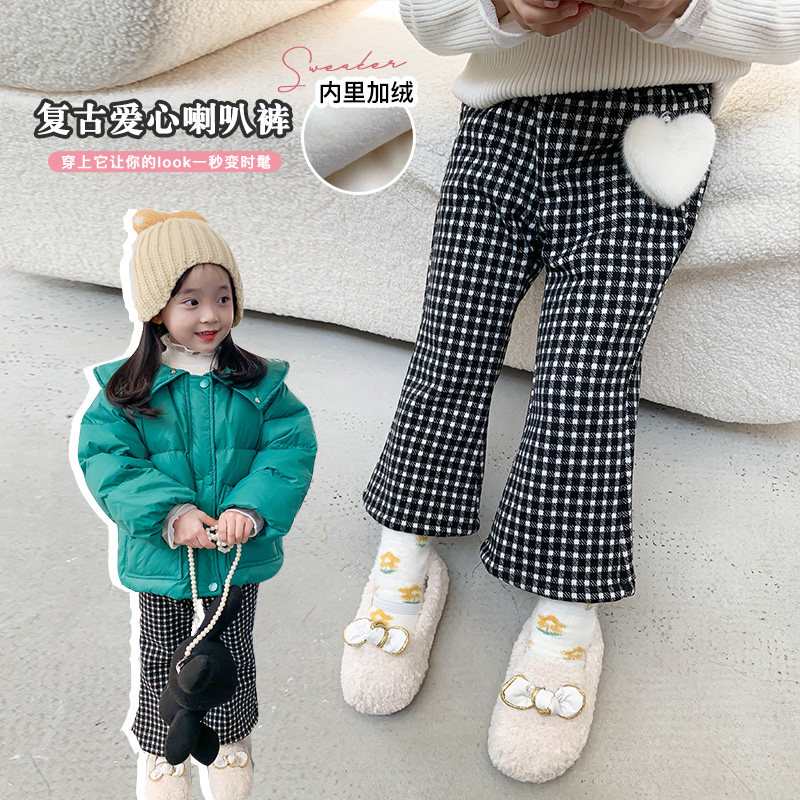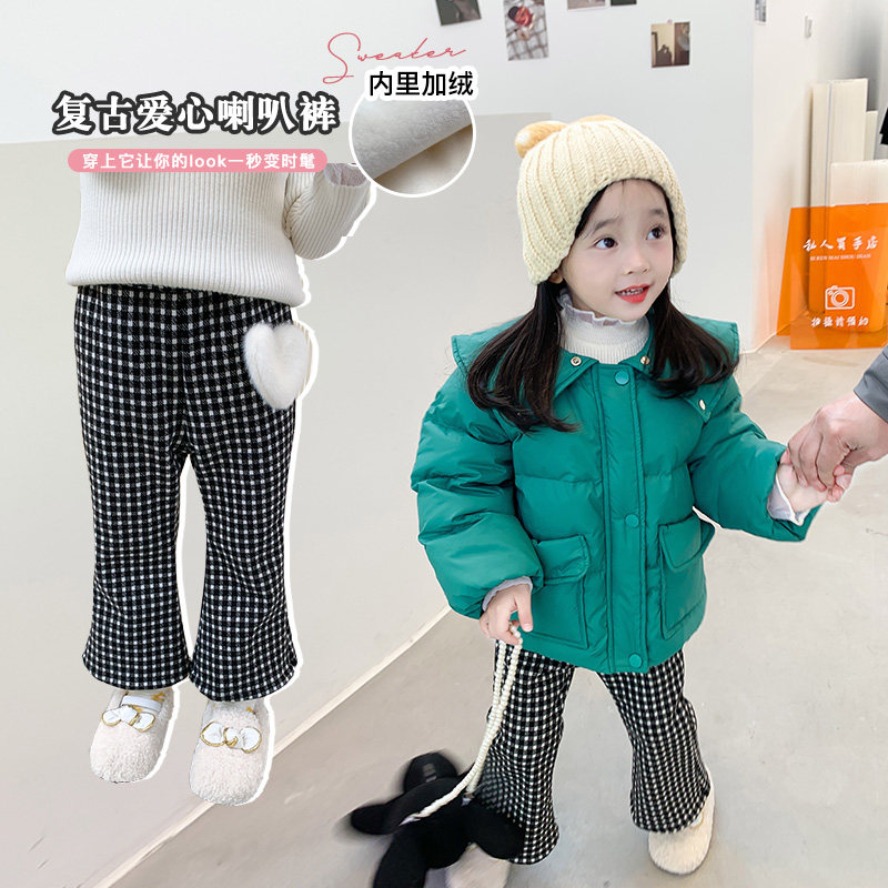 Girls' pants autumn and winter outer wear plus velvet thickening 2021 new warm flared pants one velvet baby children's pants