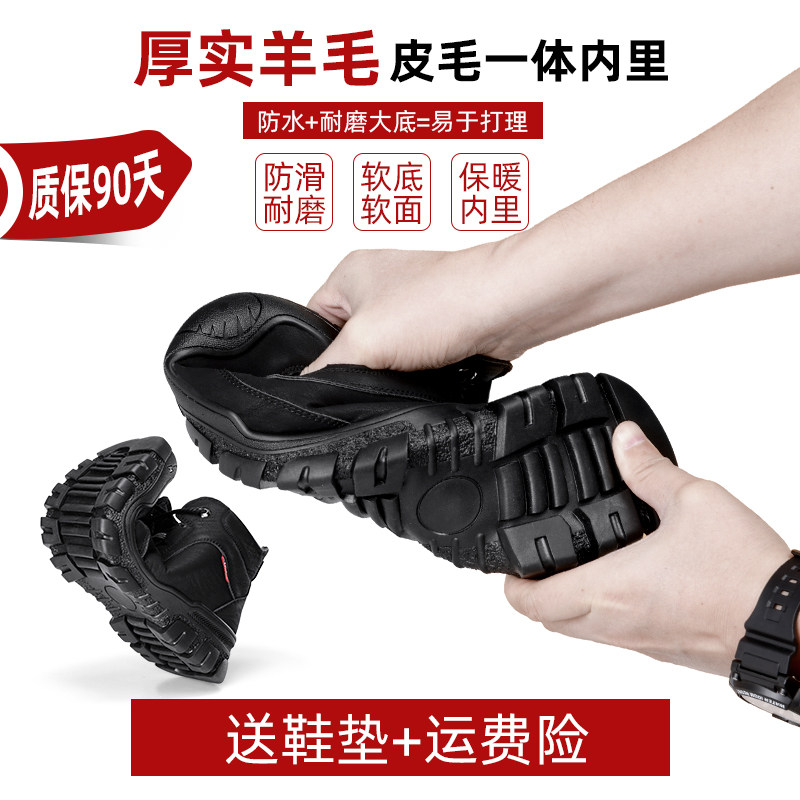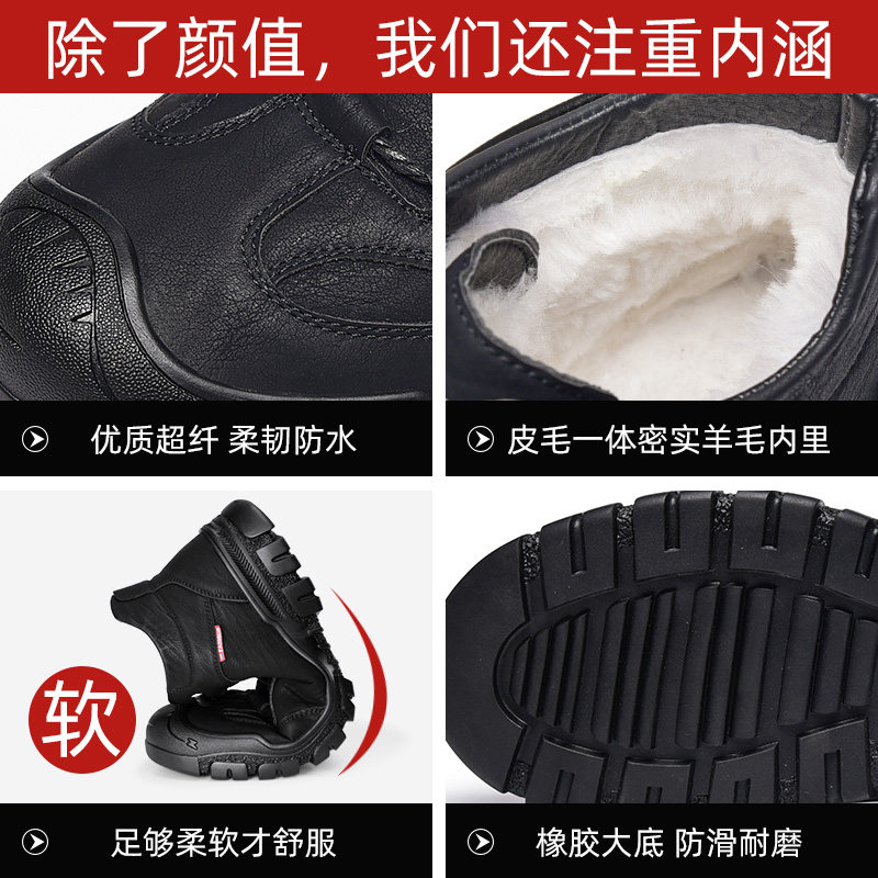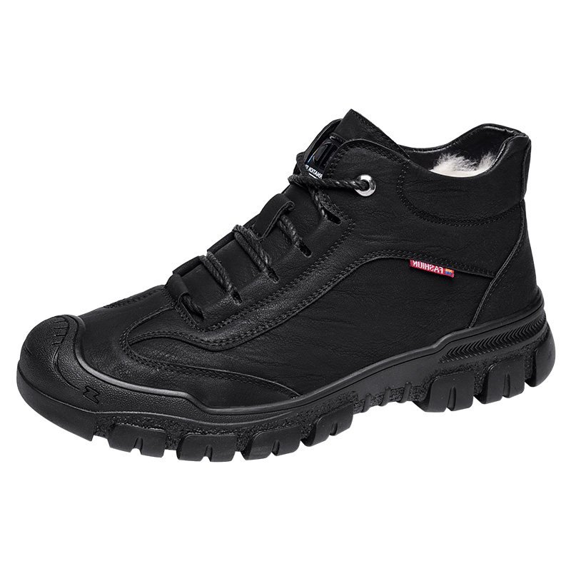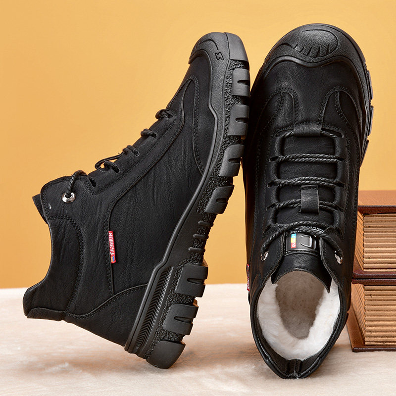 Men's cotton shoes winter warm plus velvet thick wool fur integrated large cotton trend sports non-slip high-top leather shoes