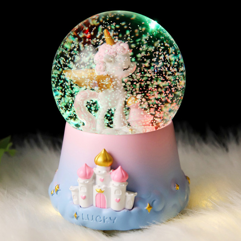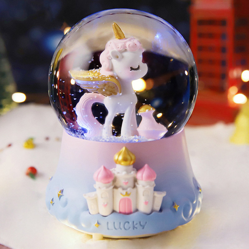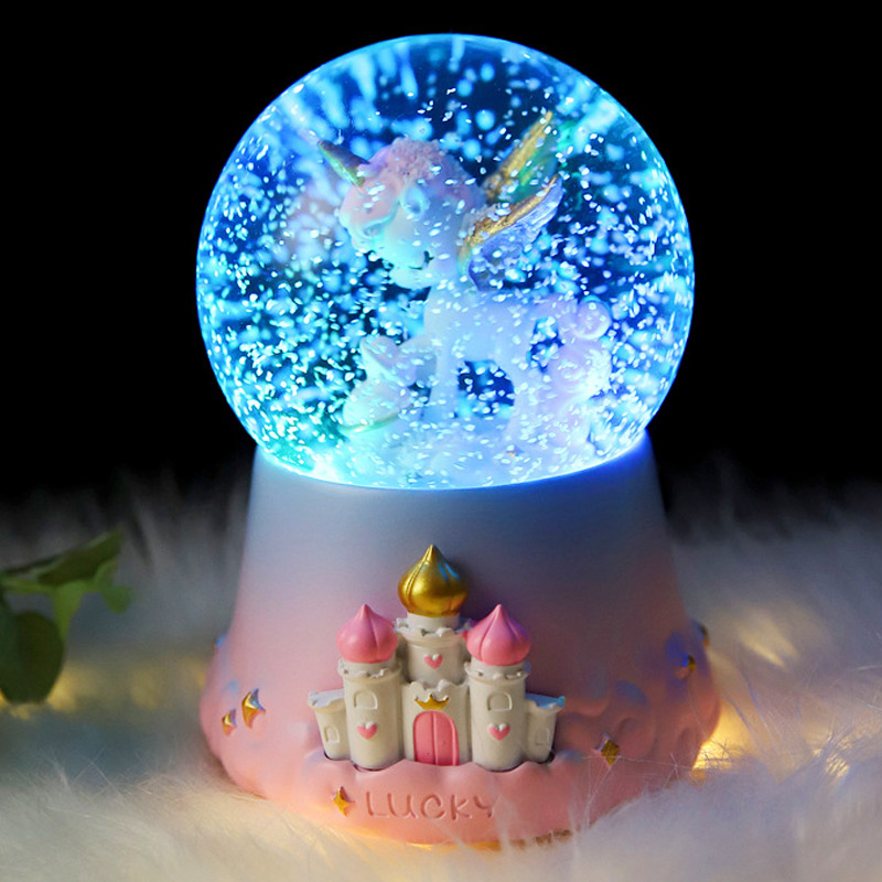 Luminous unicorn crystal ball music box children dream girl carousel princess girl day new year gift