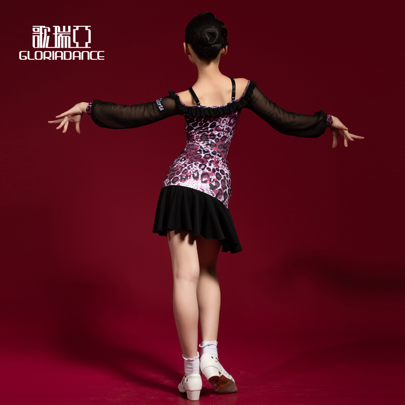 Gloria Latin dance clothes for girls and young children's new cha-cha long-sleeved dress children's Latin practice clothes 3335