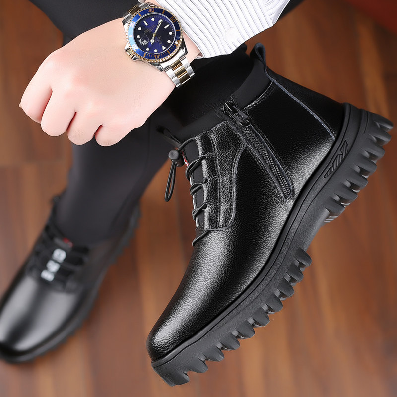 Leisure in the,Casual High-cylinder leather shoes with a high