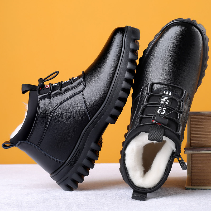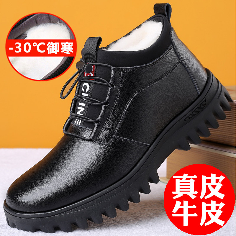 2021 New Genuine Leather Warm Wool Plus Suede Cotton Shoes Men's Winter Men's Shoes High Cylinder Thickened Snowy Boots Casual Leather Shoes