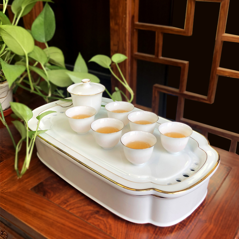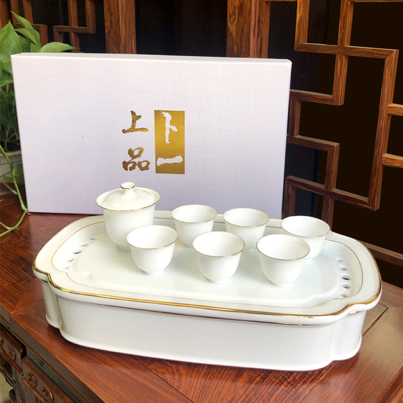 Ceramic goat fat jade Chinese qigfu tea with pure color New Chinese sea beginner tea tray simplified about home gift box clothing tea maker