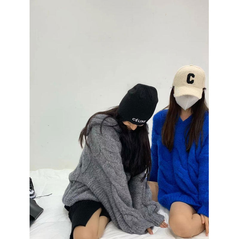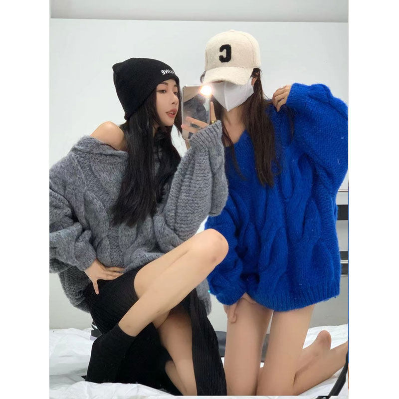 Klein blue hooded sweater women's 2022 autumn and winter new retro loose outer wear lazy wind knitted top coat