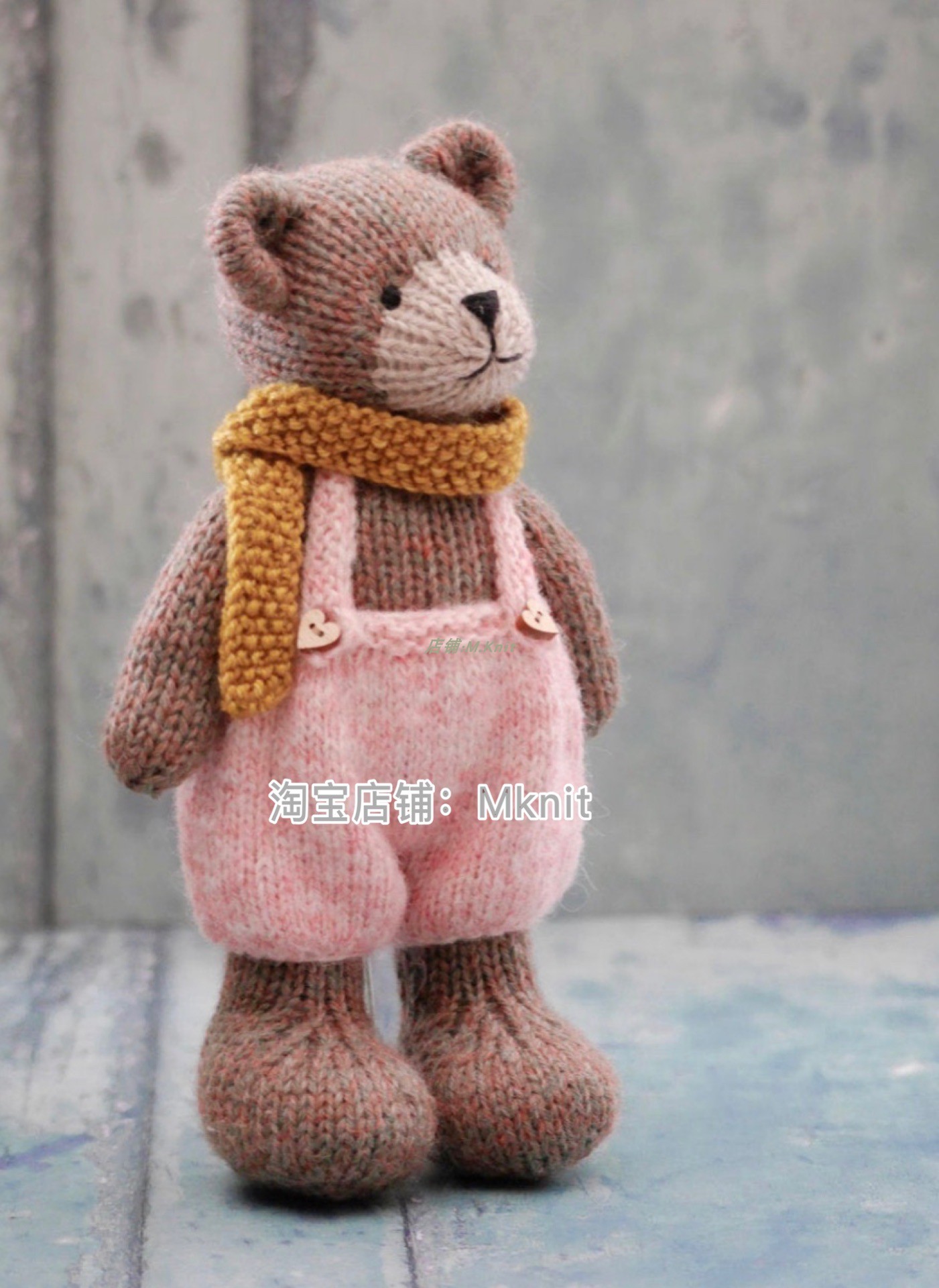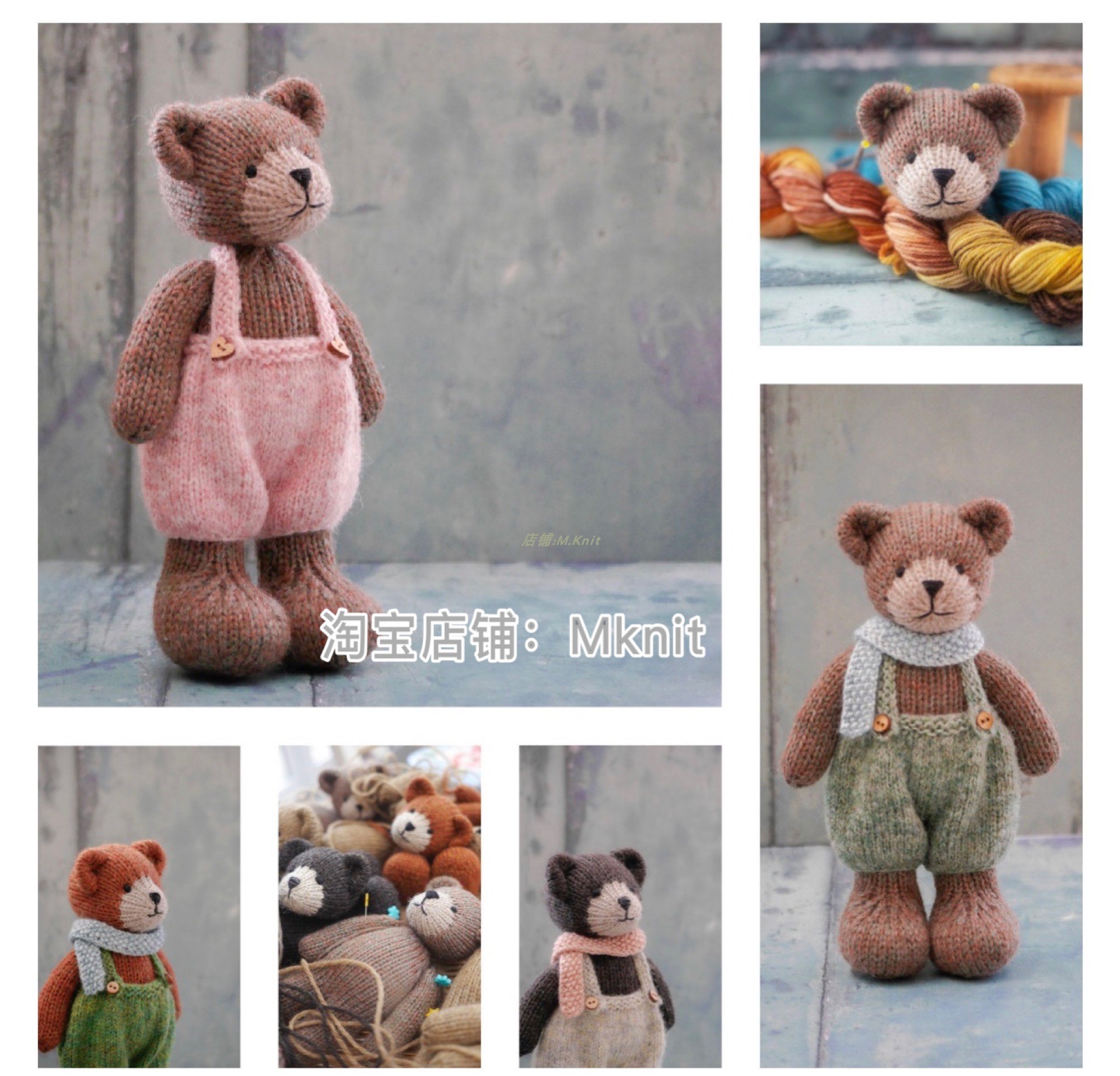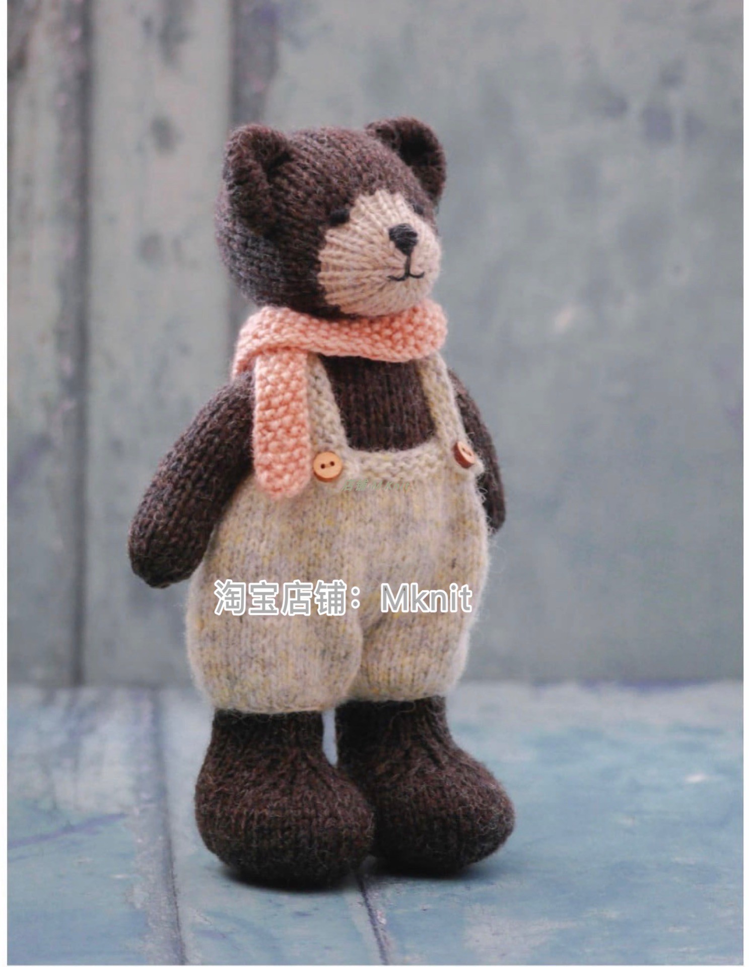 Tea room bear knitting doll graphic body overalls scarf Mknit stick needle knitting text tutorial