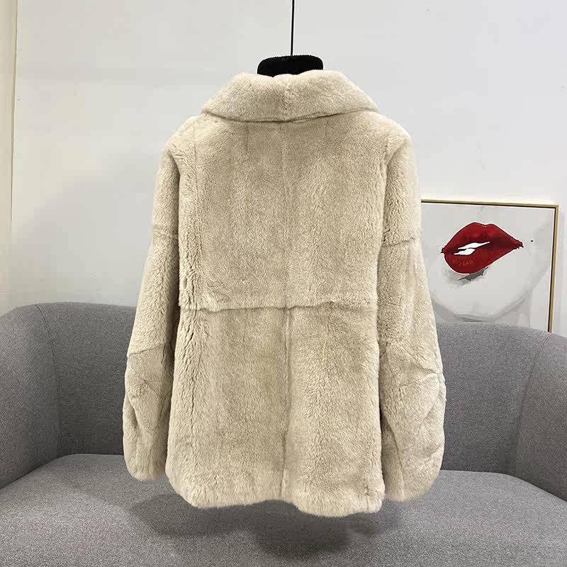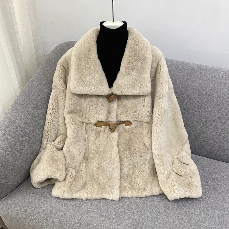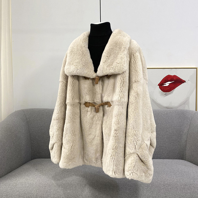 (non-fat-to-do) bigg show big size leather grass 200 catty mm Rex rabbit fur coat female coat young wintertime