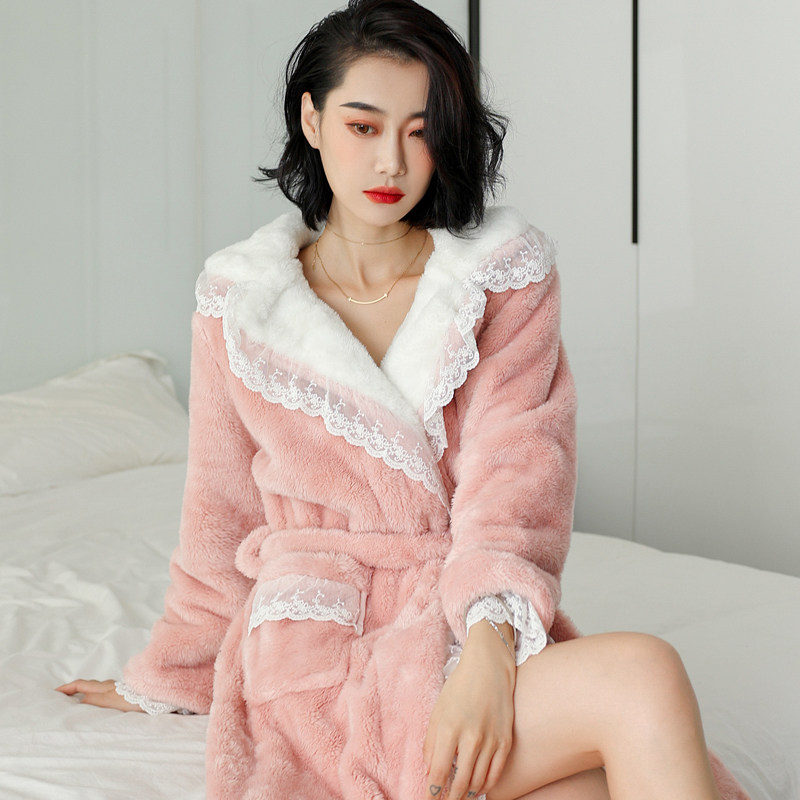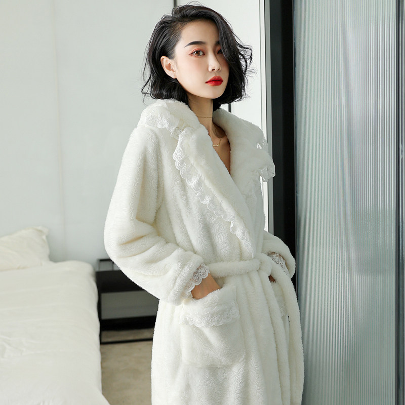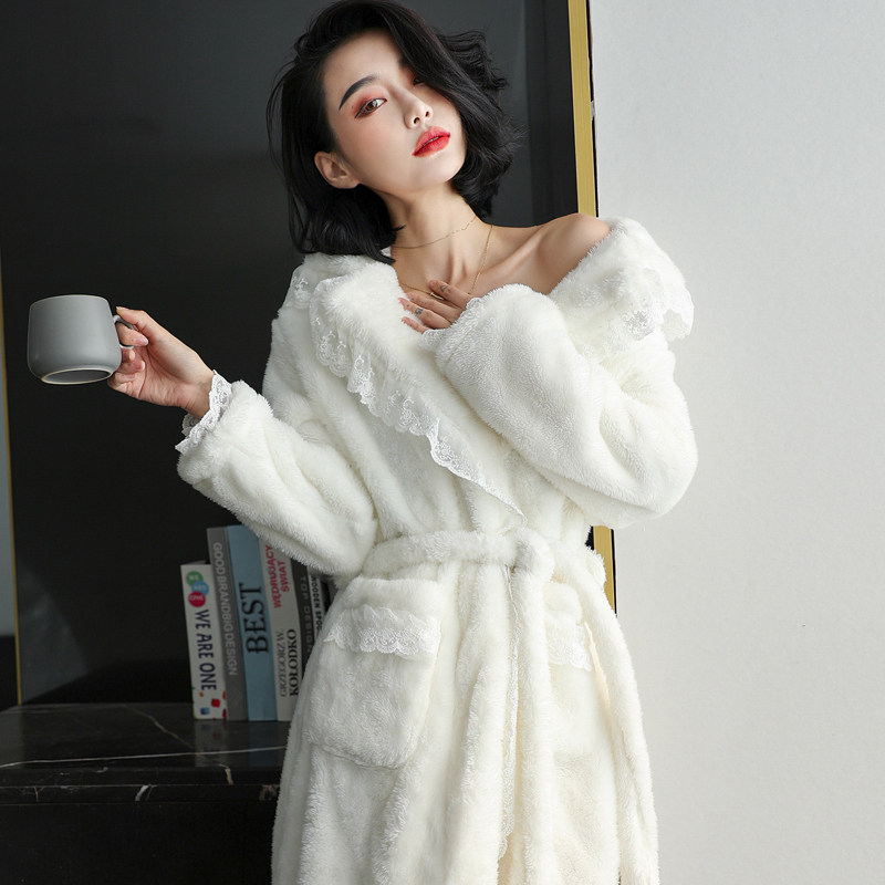 SADO YINER sexy coral fleece nightgown women's winter new thickened warm bathrobe long version flannel pajamas