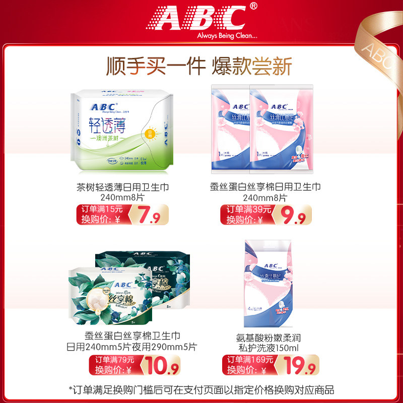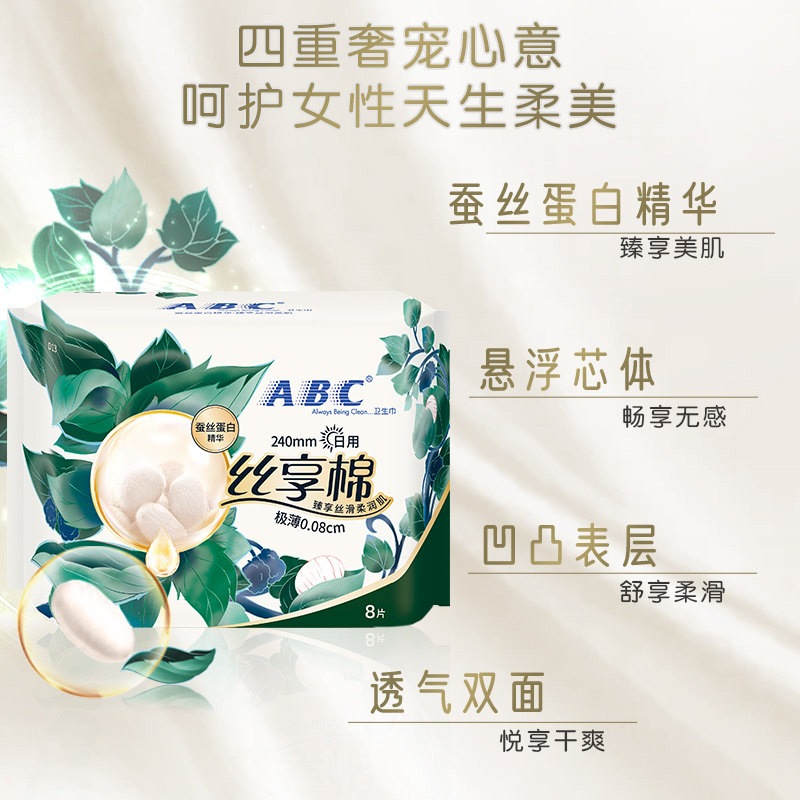 (Baibu) ABC Official Flagship Store Silk Essence Silk Cotton Day and Night Sanitary Napkins 4 Pack