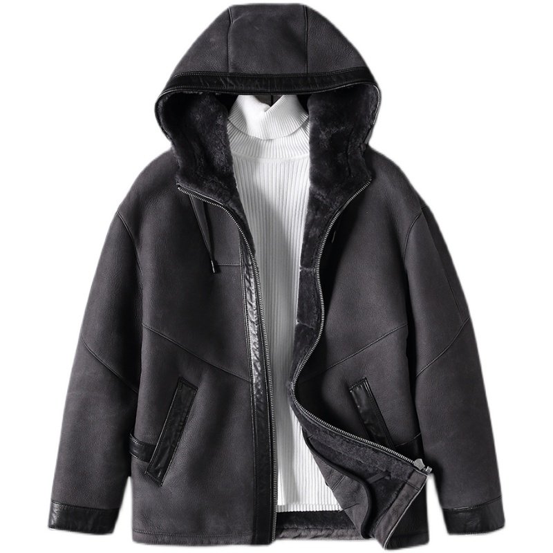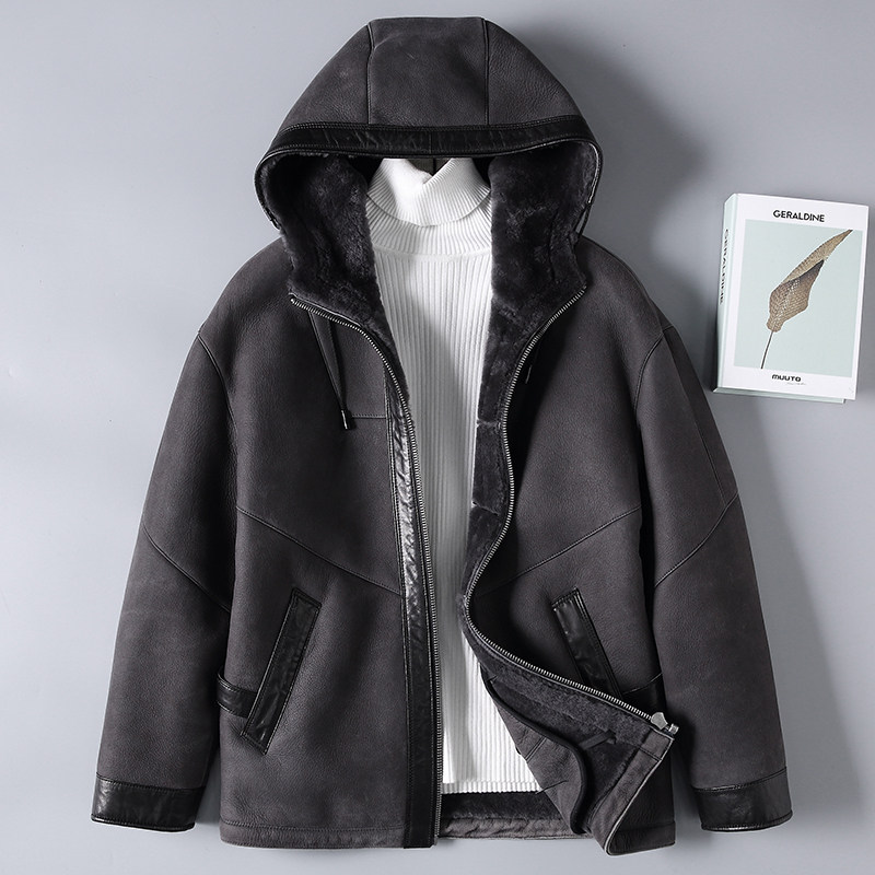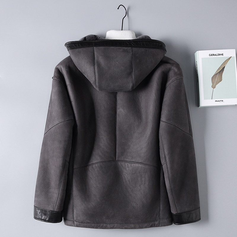2021 Henning winter new original eco-fur integrated men short leather leather clothing locomotive leather jacket jacket