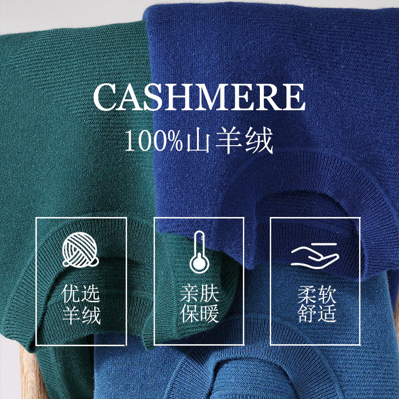 Ordos Produce Winter Upscale 100 Pure Cashmere Sweatshirt South Male Youth Round Collar Pure Color Inner Lap Knit Sweater