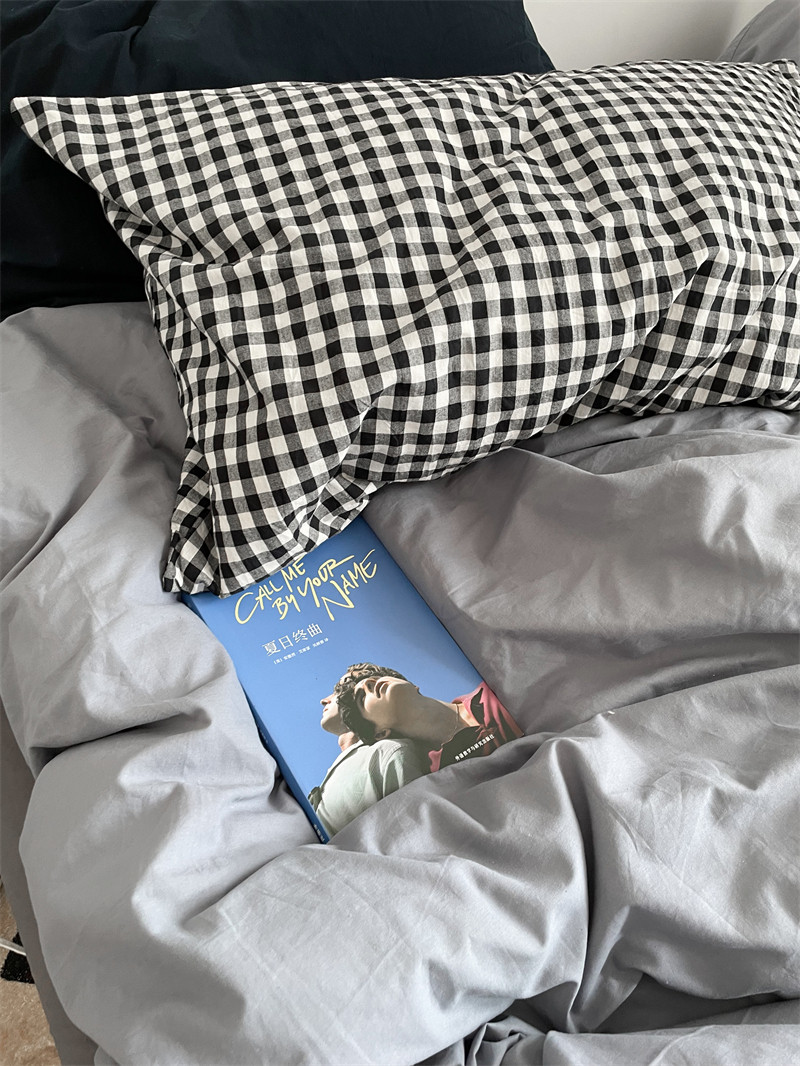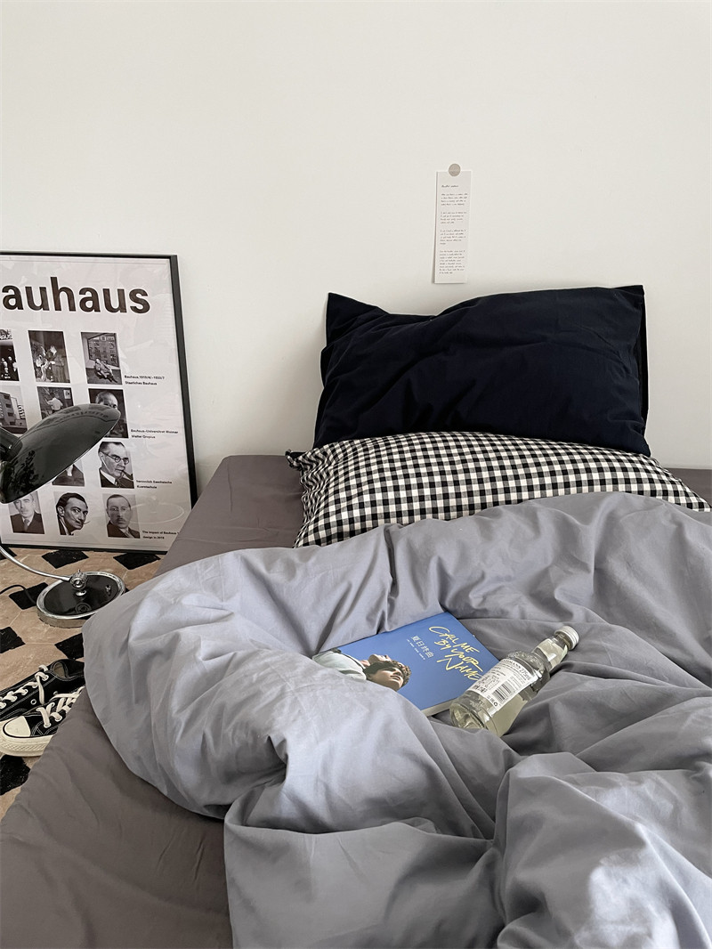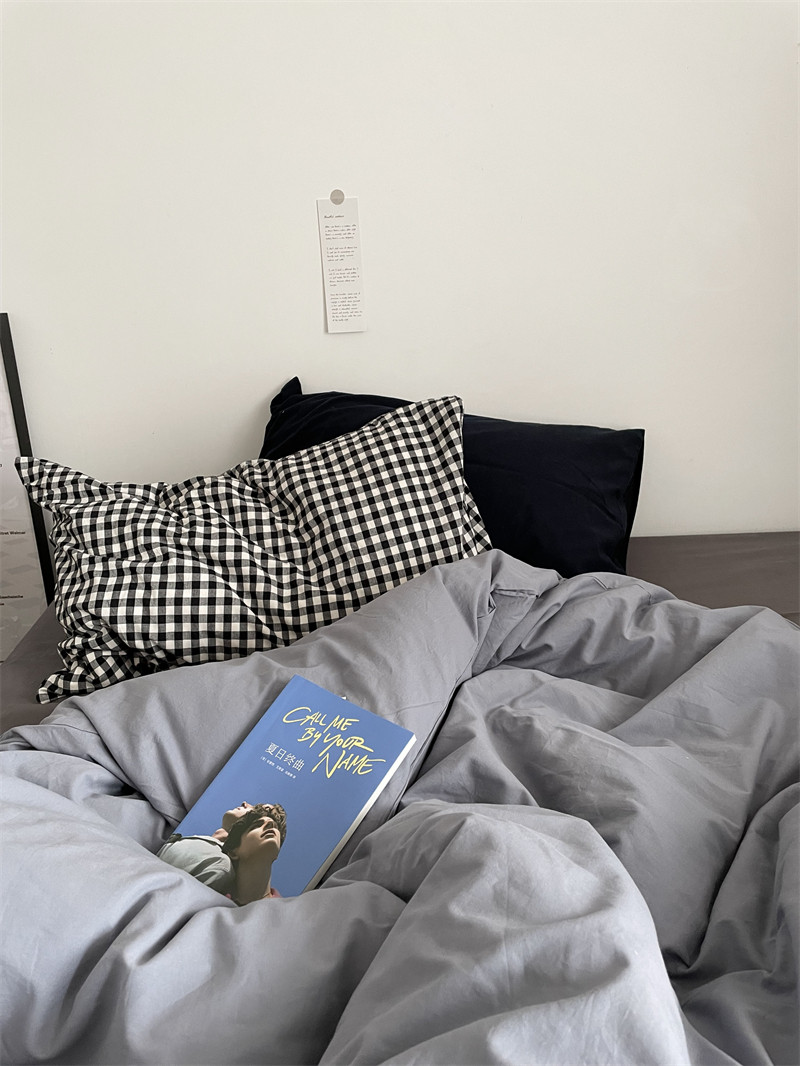 Pear Dream blue Chopin ~ ins Japanese mixed lap pure cotton washed cotton four pieces of checkered sheet Quilt Cover Bed