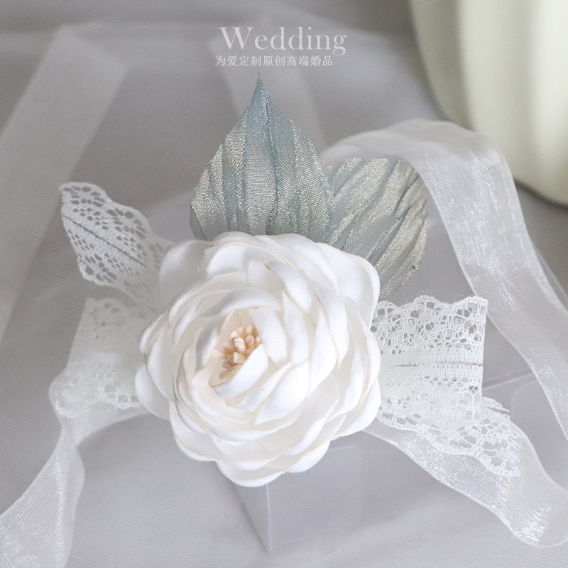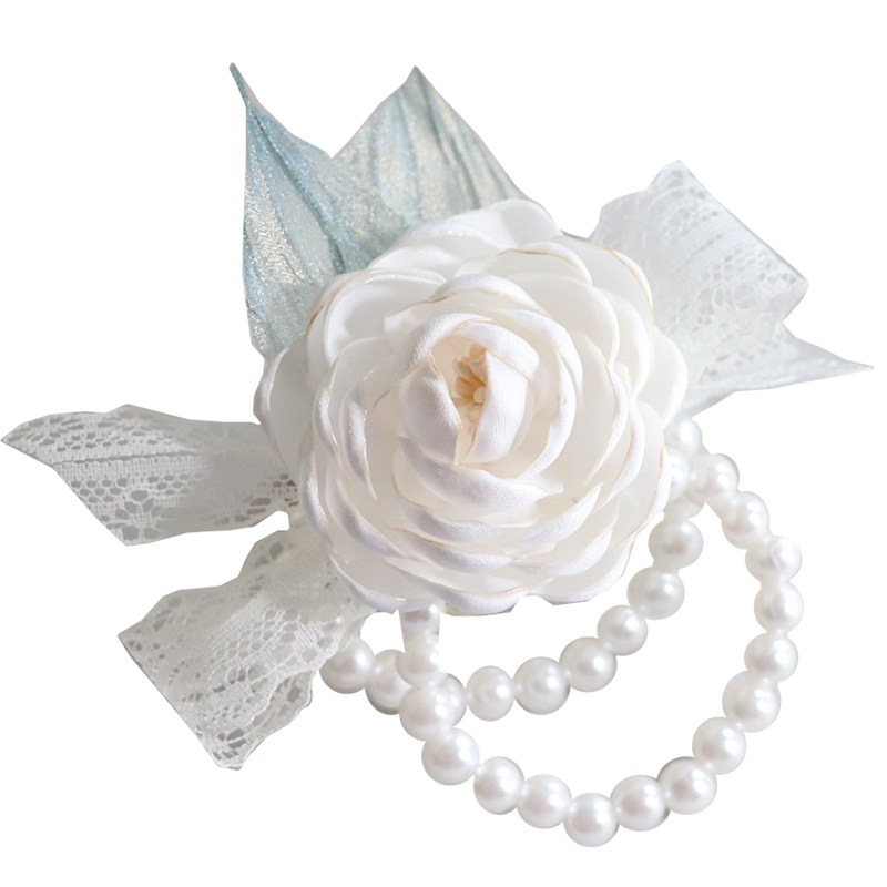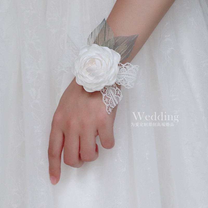 The French style meritocratic wedding wrist flower bridesmaid's sister group hand ring pearl handmade bride to marry flower mountain tea flower bud