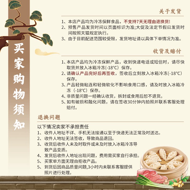 Wheat flour, glutinous rice, water, white sugar, pork, monosodium glutamate, pea brewing, soy sauce, white pepper powder, sesame oil, chives, mushrooms, rice wine, salt, chicken seasoning