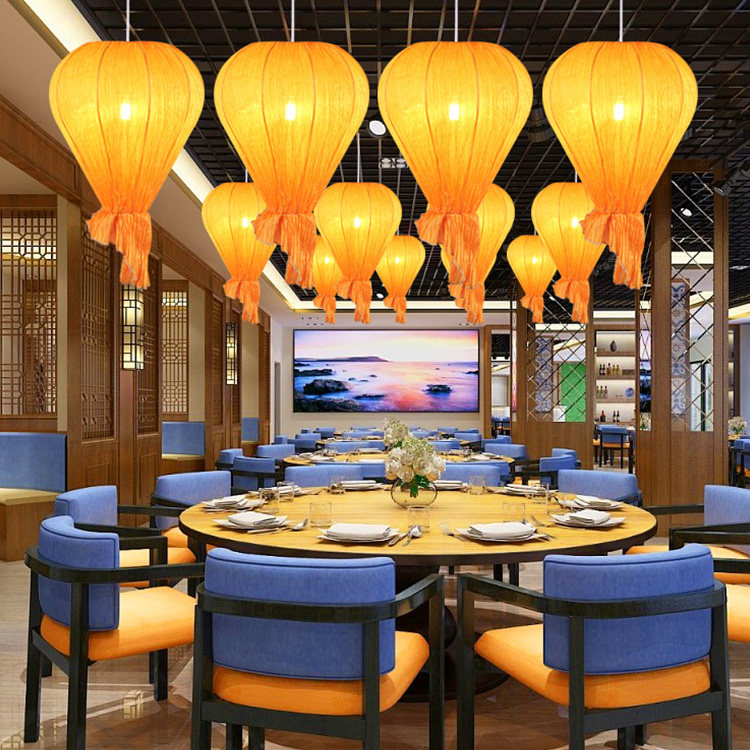 Chinese Tide Lantern Hotel Dining Hall Hot Pot Retro Creative Flower Light Waterproof Classical Cloth Art Lamps Ancient Wind Hanging Decoration