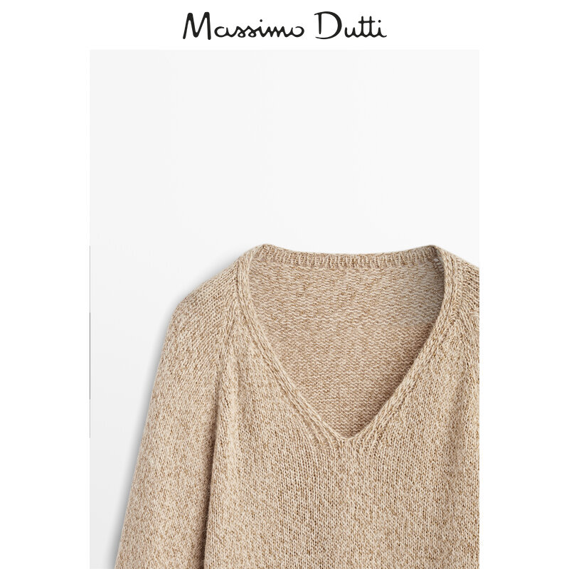 When season ex-gratia Massimo Dutti women's dress V collar shiny yarn sweater knit-jersey 05727611303