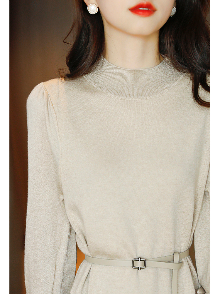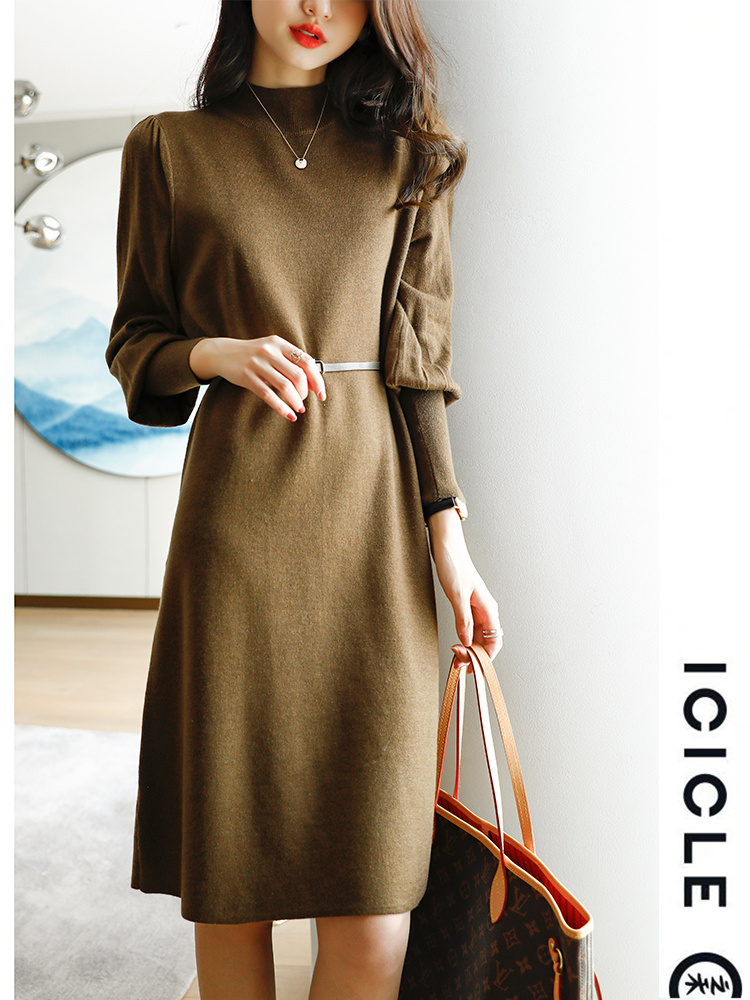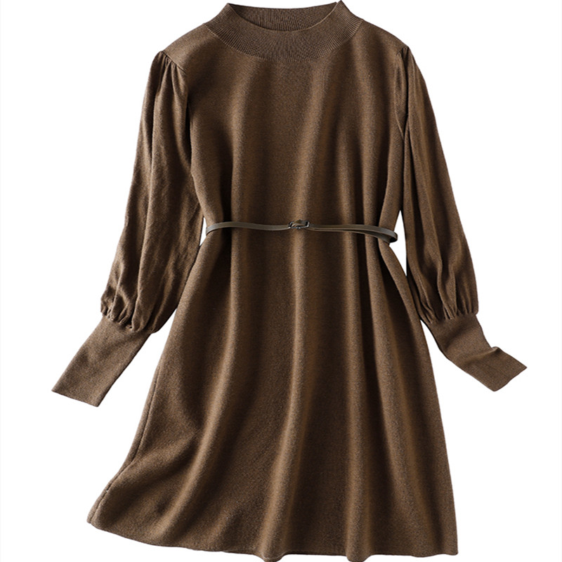 Domestic counters 2022 autumn and winter pullover round neck long skirt with waist and bottoming wool knitted dress