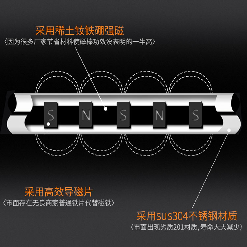 Magnet rod 12000 Gauss magnetic rod magnetic rod strong magnetic rod high temperature resistant high strength iron removal magnetic frame strong magnetic rod