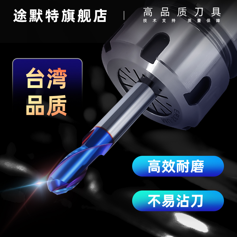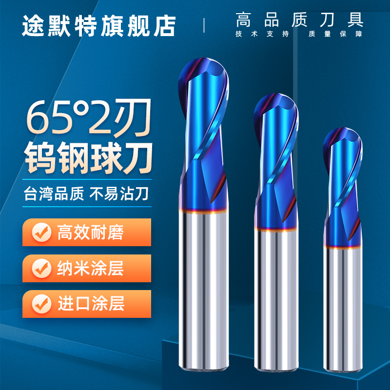 Tumote HRC65 degree high hard milling cutter 2 edge ball cutter tungsten steel milling cutter R cutter alloy nano-coating end mill