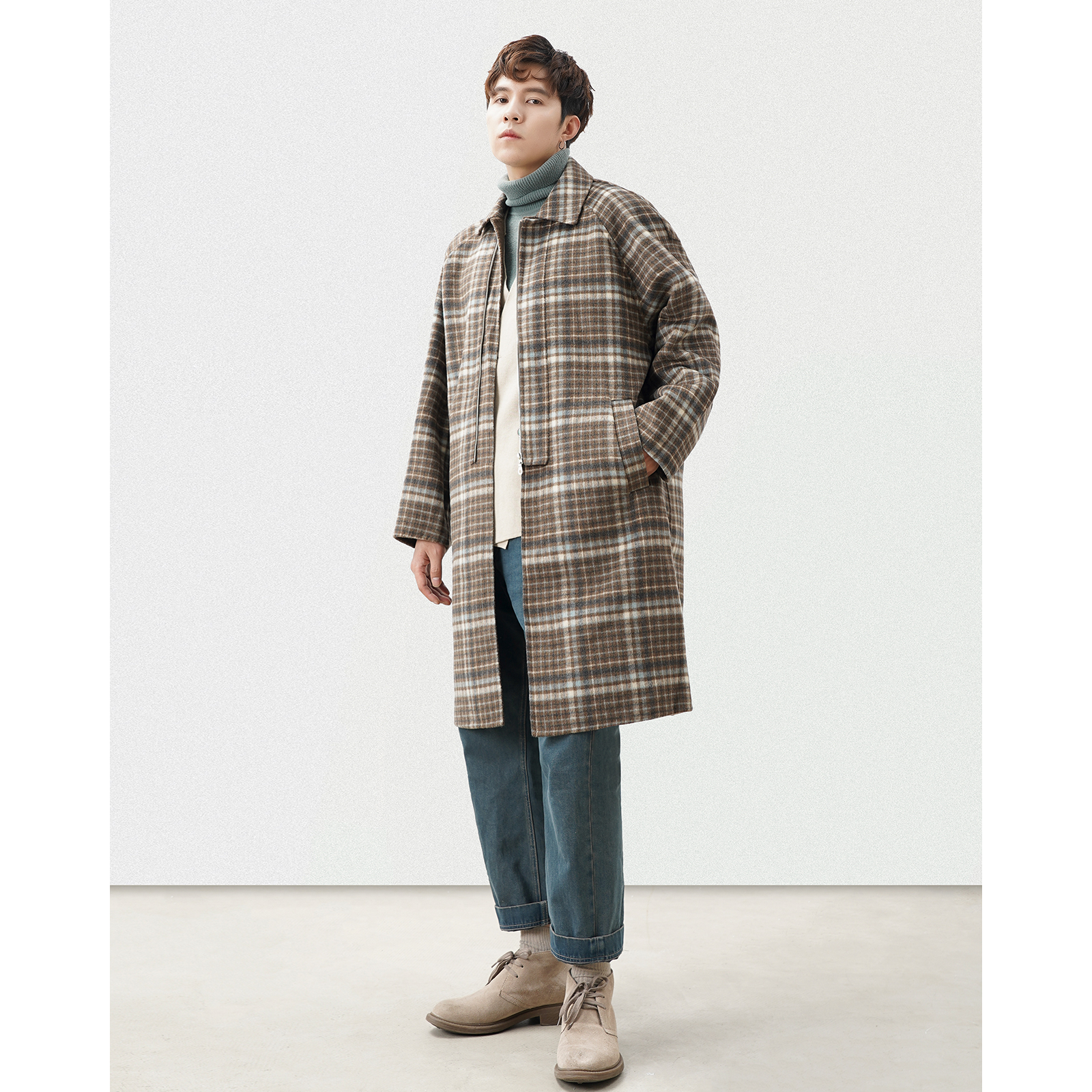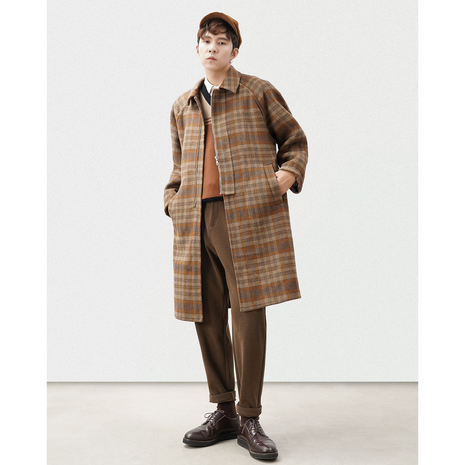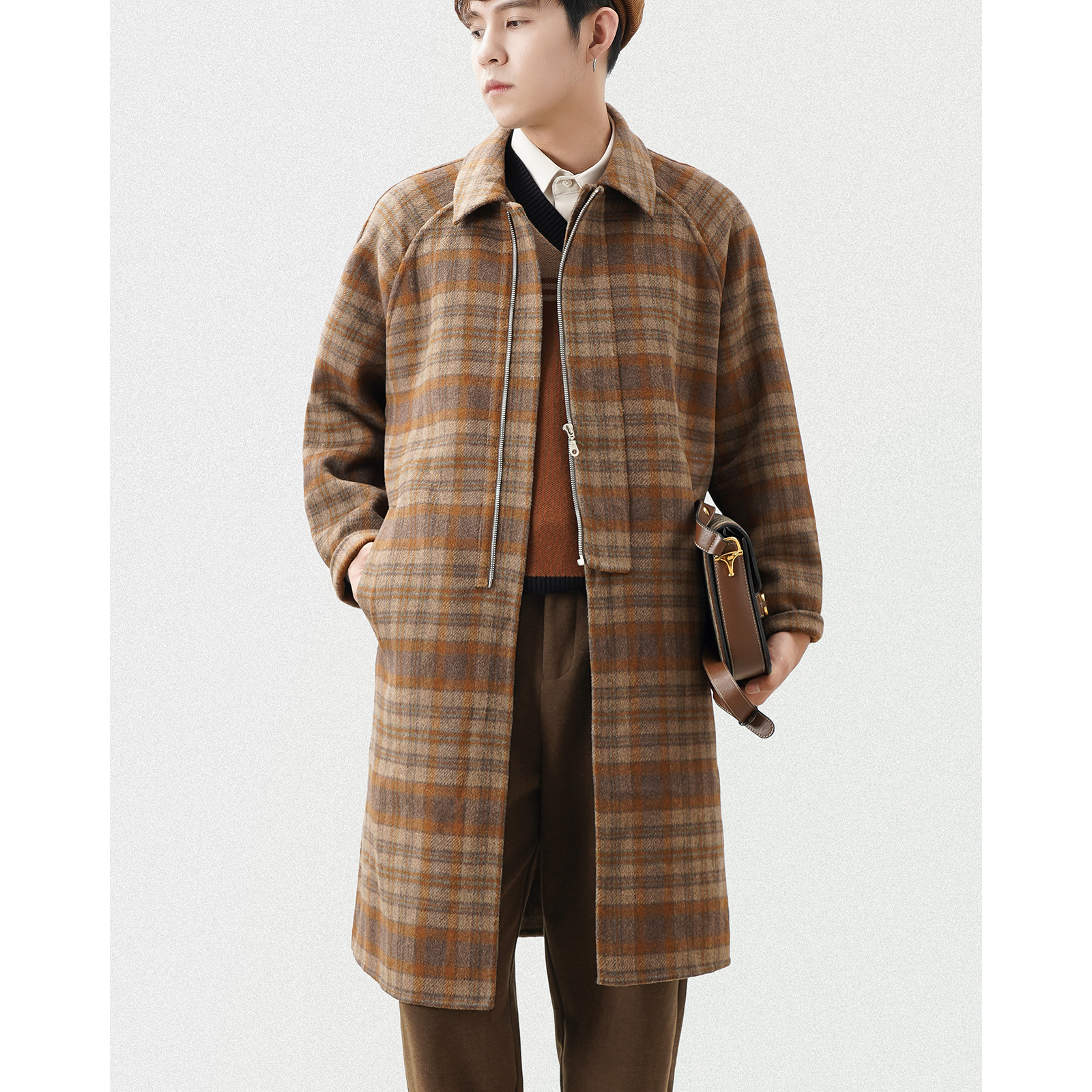 Winter wool double-sided coat men's mid-length version of the givebirds plaid flap to thicken the non-cashmere woolen sweater
