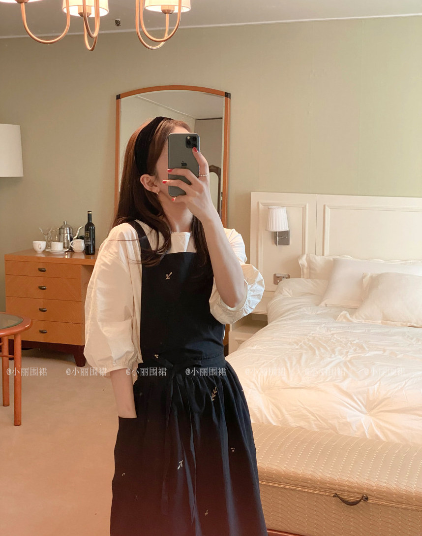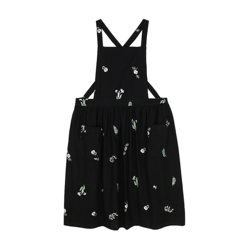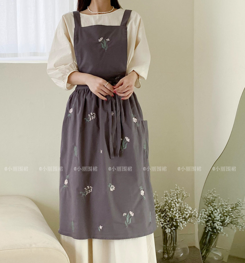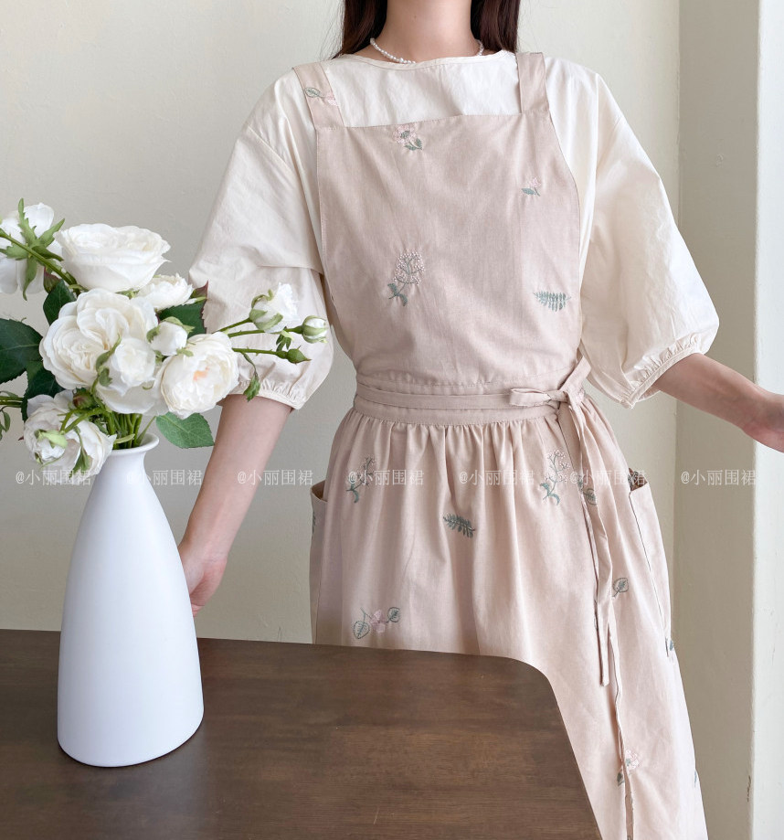 Korean ins net red Jiang Yan with waterproof coating embroidery pleated apron home floral retro cotton linen breathable