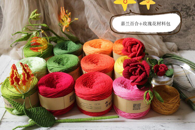 Lanyuejia Yarn Flower Rose Flame Lily Material Pack (excluding Crochet Flower Pots) Novice Be Careful