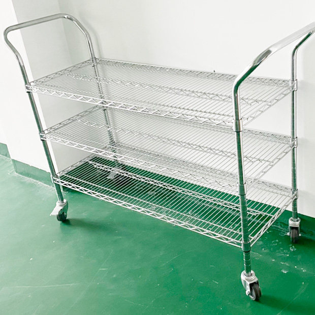 Anti-static turnover car factory workshop electronic material car carbon steel chrome-plated wire net trolley small shelf tool car