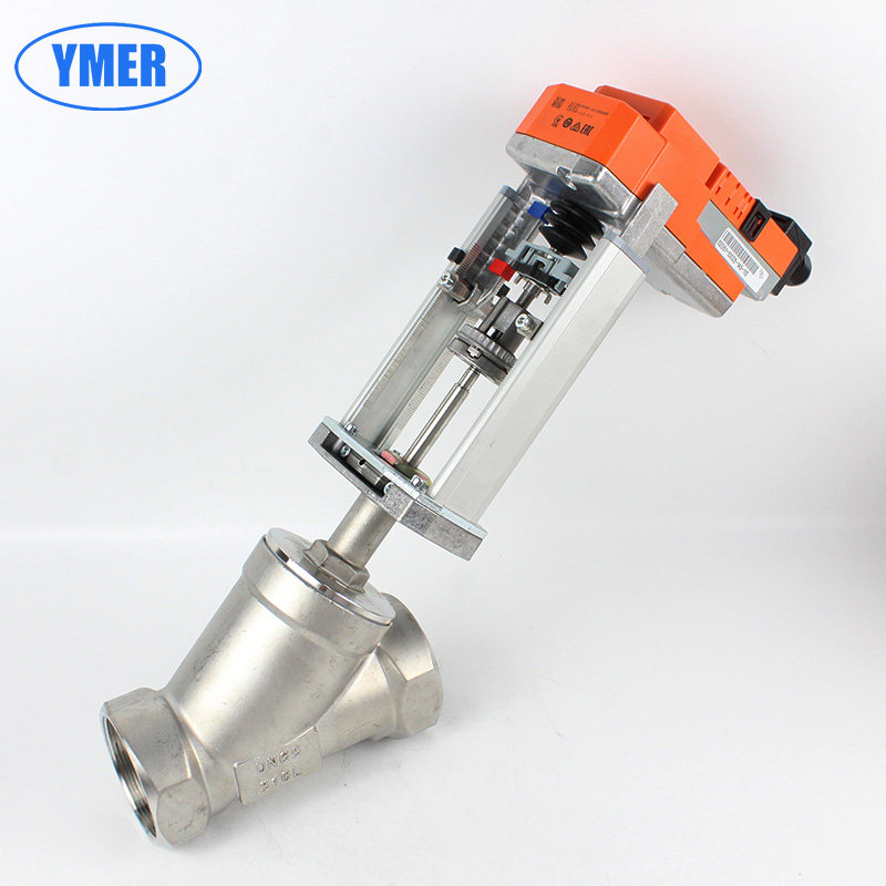 Stainless steel angle electric regulating valve Y-type electric proportional analog Thread small angle seat valve