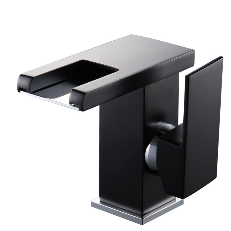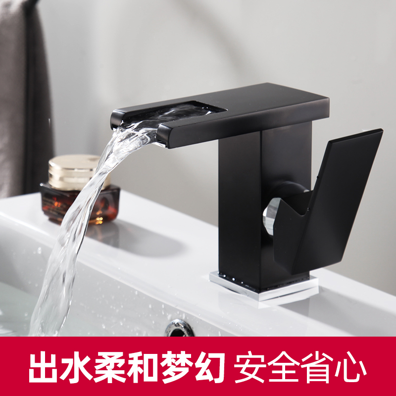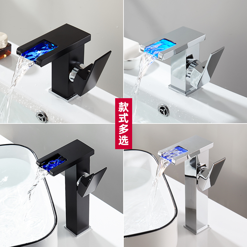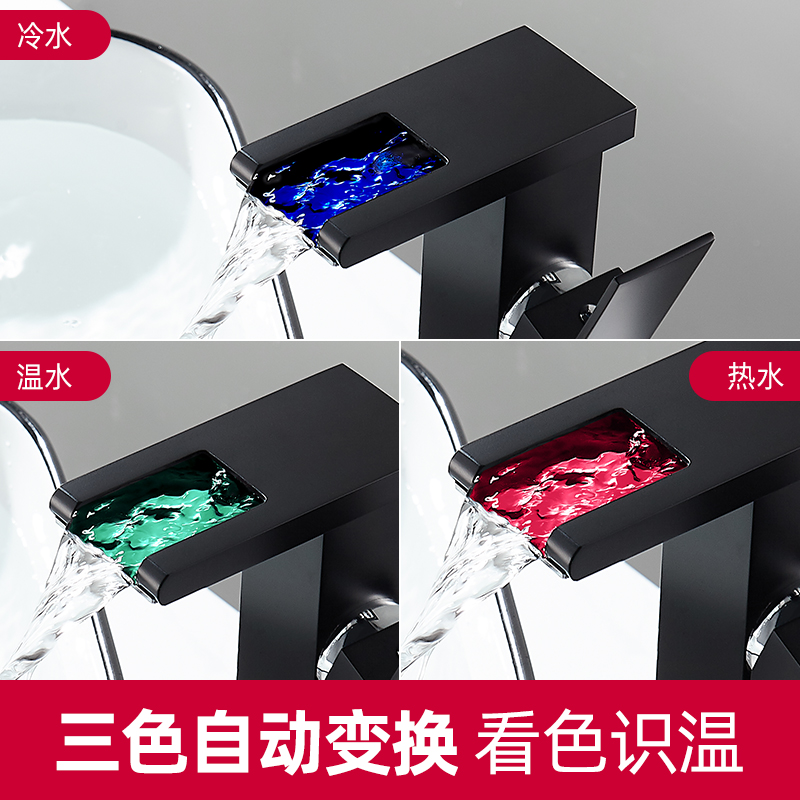 Black washbasin faucet hot and cold all copper bathroom washbasin faucet waterfall luminous LED discoloration faucet