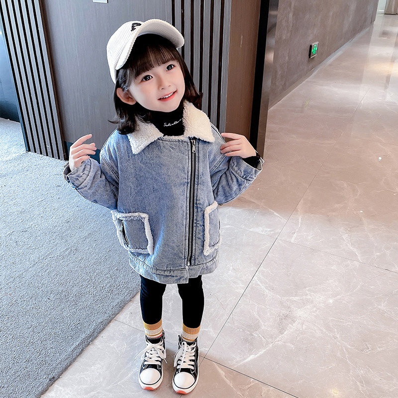 Girl Lamb Suede Winter Clothing 2023 New Child Handling Cotton Cotton Clothes Little Girl Pike Clothes
