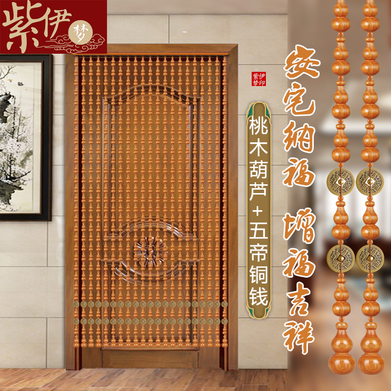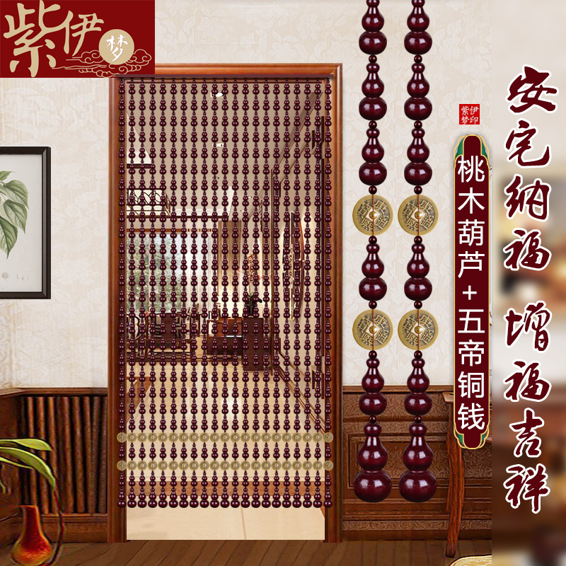 Fat City Five Imperial Money Peach Wood Hyacinth Partition Window Free of punch Xuanguan Living room Aisle Makeup Room bedroom door curtain bead curtain