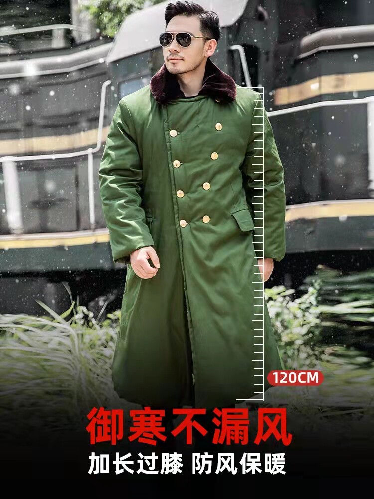 Long version of military cotton great clothes men's refrigerated storage anti-chilling winter thickened thermal labor insurance working cotton clothes Green Northeastern large cotton padded jacket