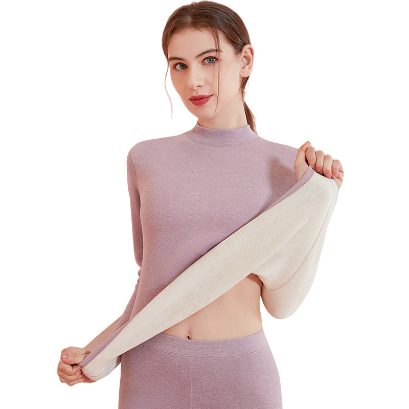 Integrated suede heating clothes woman winter plus suede thickened autumn clothes semi-high collar No-dent blouse Decede cold-proof and bottom-shirt