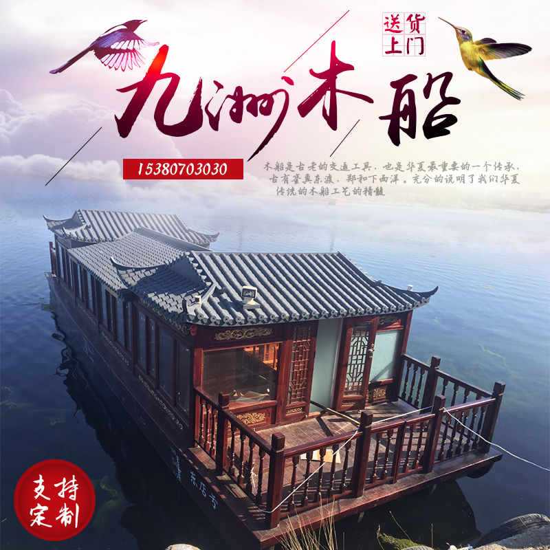 Wooden boat, painting boat, water catering, large-scale antique scenic spot, park, fiberglass house, electric sightseeing boat