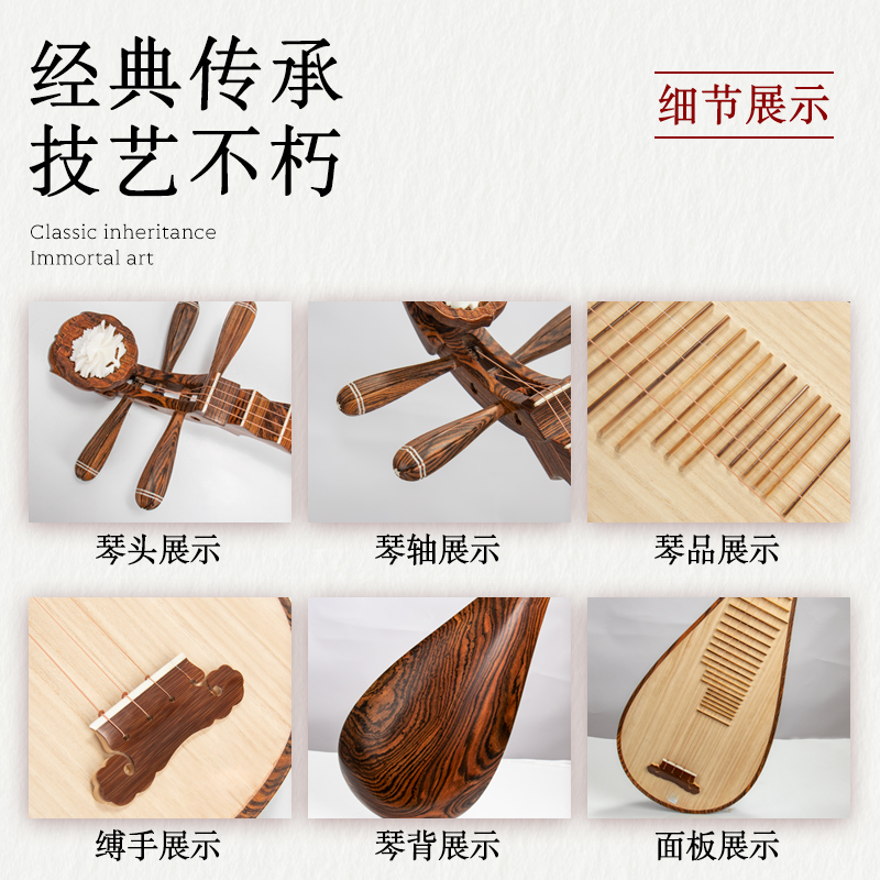 Yihai black sandalwood pipa musical instrument for beginners beginner adult easy learning professional grade examination playing pipa factory direct sales