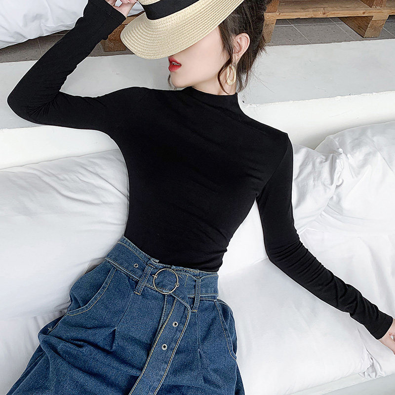 Half turtleneck German velvet bottoming shirt women's inner wear autumn and winter Western style plus velvet warm top 2022 new tight-fitting long-sleeved