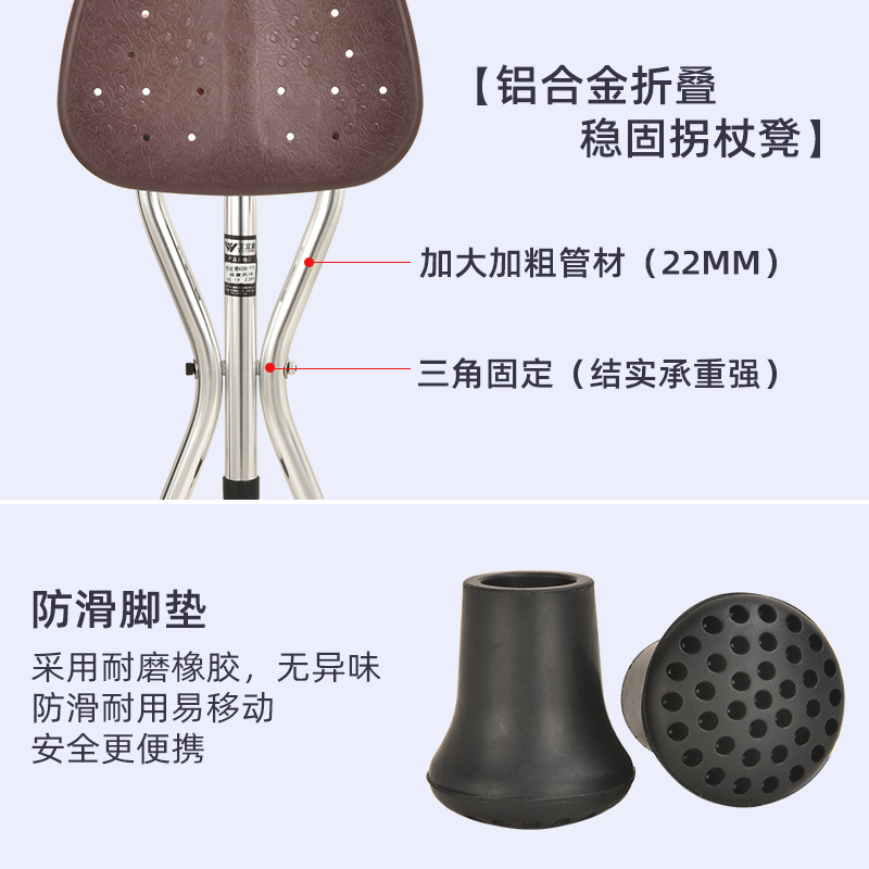 Portable crutch stool inflection stick with elderly cane 4 feet with chair anti-slip elderly multifunctional foldable stool-Taobao