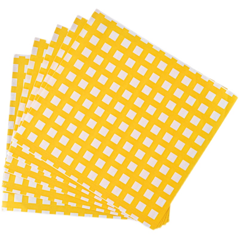 Yellow plaid paper 50 sheets (opening paper bag section) Yellow plaid paper 100 sheets (opening paper bag section) sandwich paper 50 omeleted egg pattern box 10 sandwich paper 50 omelec pattern box 50 three