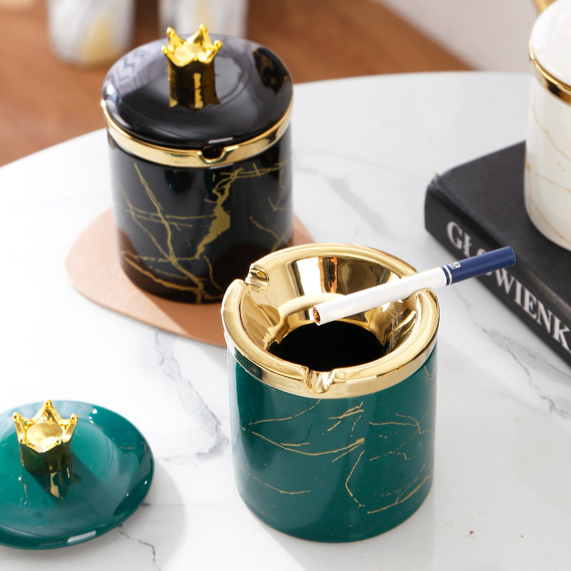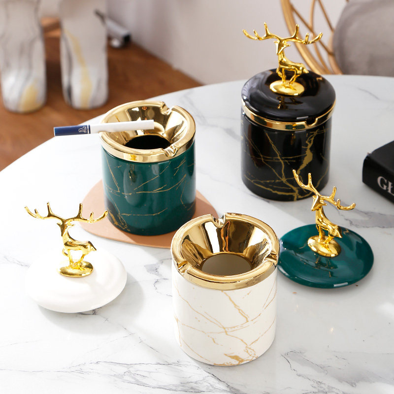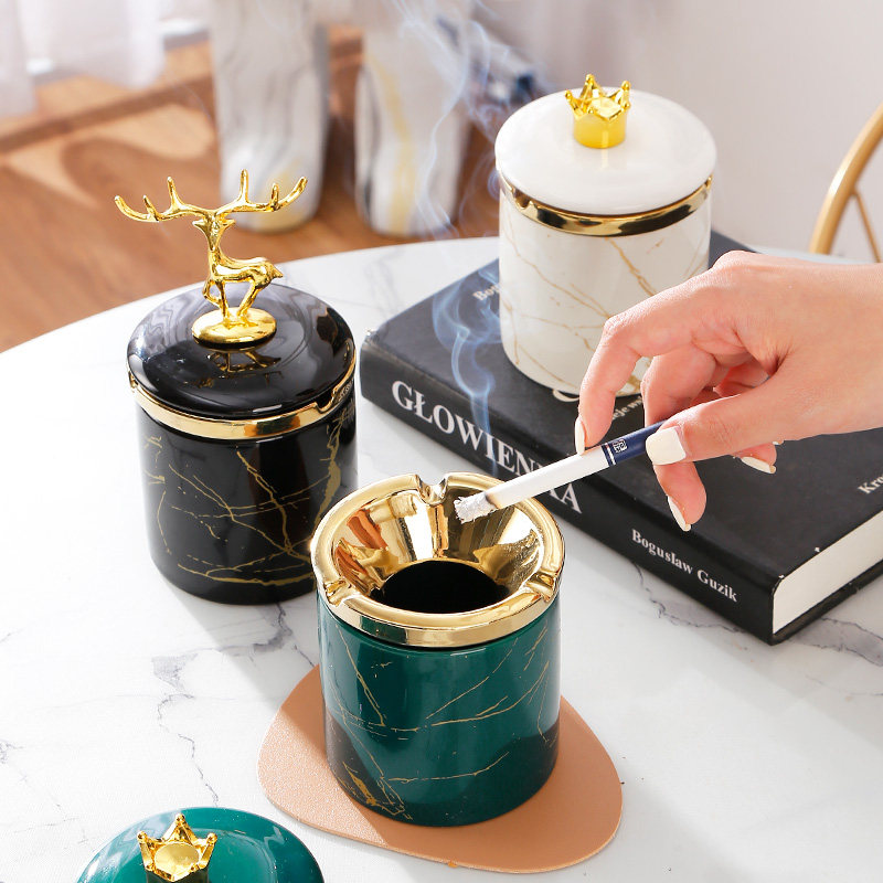 Nordic light luxury high-end ceramic ashtray with lid creative personality trend home living room funnel anti-flying ash smoke